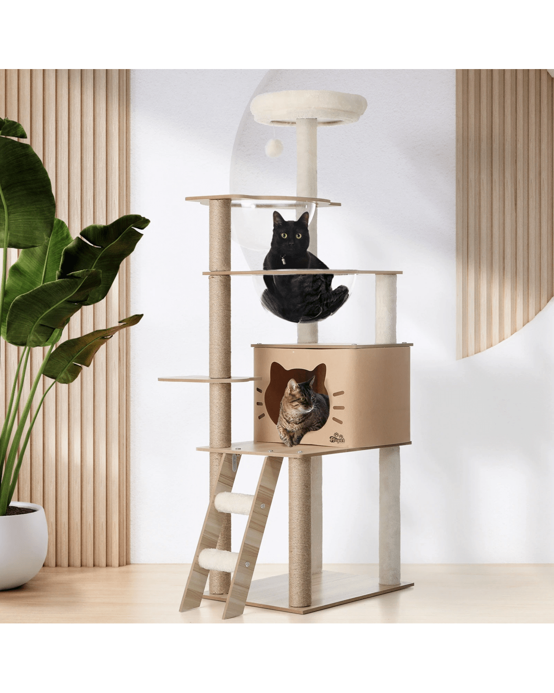 Sold by Kamprad's Oikos 1943Alopet Cat Tree Tower Scratching Post Wood Scratcher Condo Detachable House - Natural