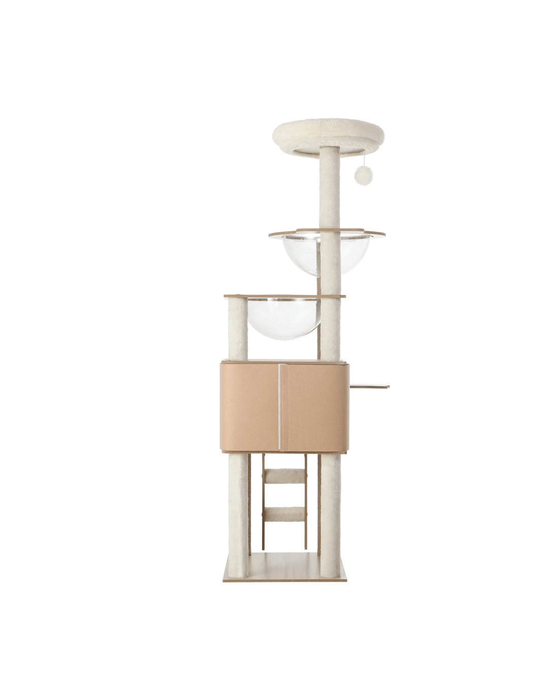 Cats and cat trees simply go together like bread and butter. And our Alopet Cat Tree is made perfect for your feline friend to satisfy all its innate instincts. From jumping, climbing and hopping around with the cat tree's multi-level platforms or napping and hiding away in dedicated cubicles and doing everything else in between, your pet will enjoy every aspect of the cat tree. Such as the sisal-wrapped posts to sharpen and maintain their claws freely and thankfully not on your prized furniture and other household items, and various play spots to entertain and stimulate your cat for hours. Made of sturdy E1 particle board, the cat tree is designed for robust use and yet comfortable enough with its plush posts to get your cat purring with delight at every post, nook and corner, and detachable transparent bowls to observe kitty as it cuddles in play. Better still, set-up is quick and fuss-free so that your cat can get on to all that it naturally loves to do with our cat tree in no time at all. A happy cat is a healthy cat indeed. And there's no better place to start than with our Alopet Cat Tree.