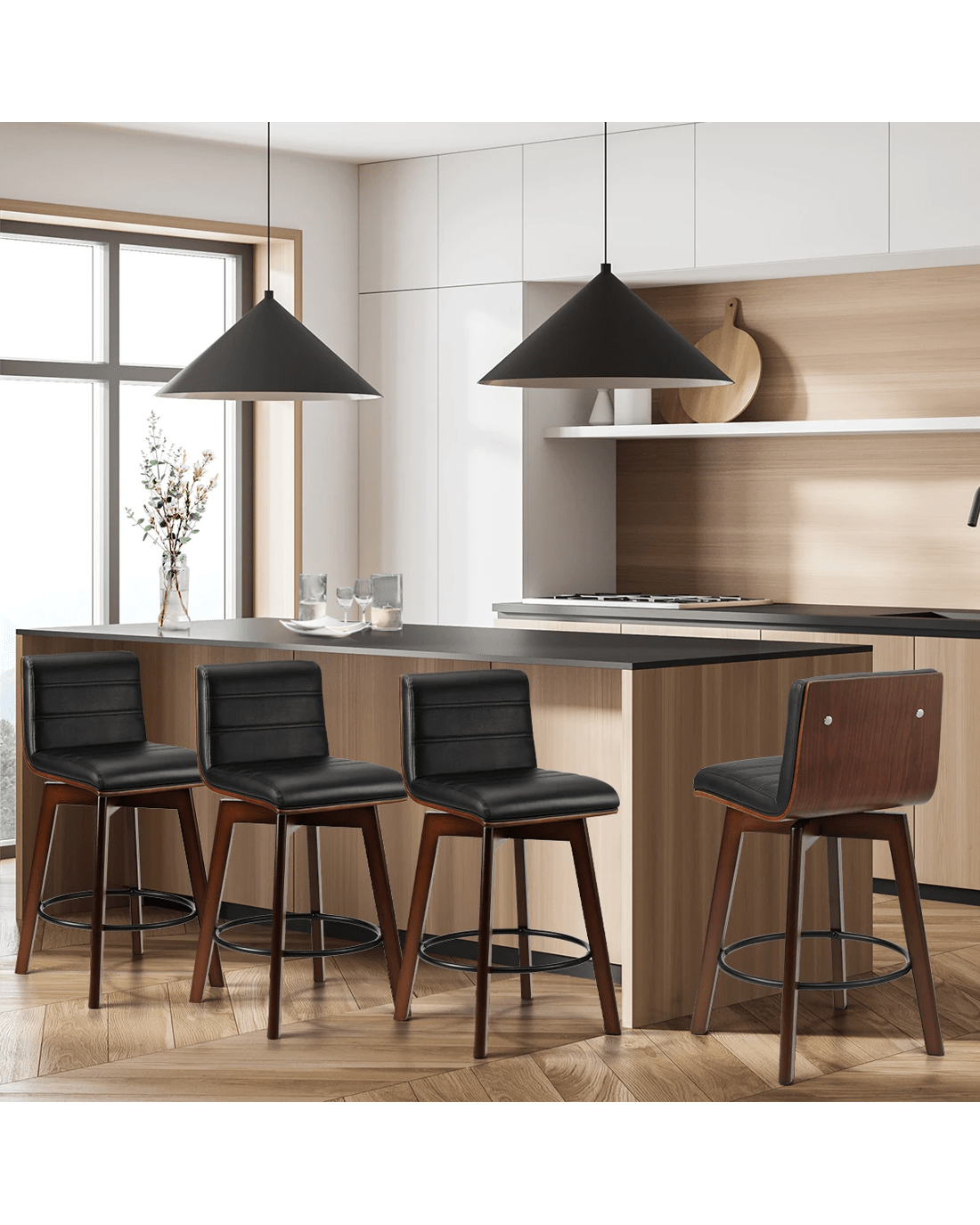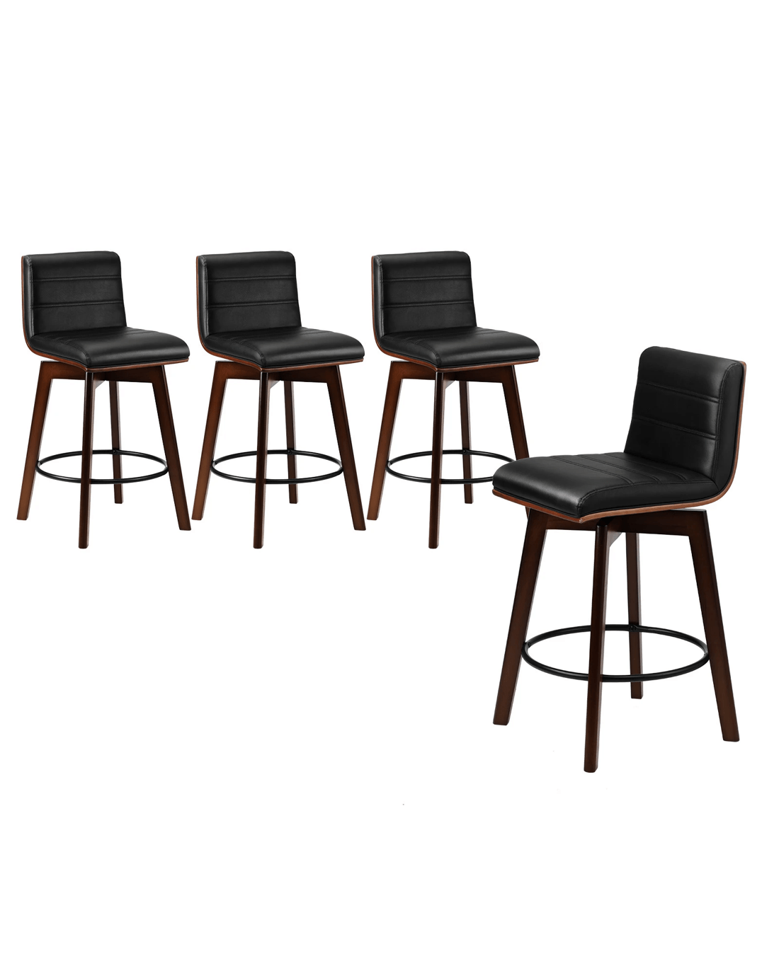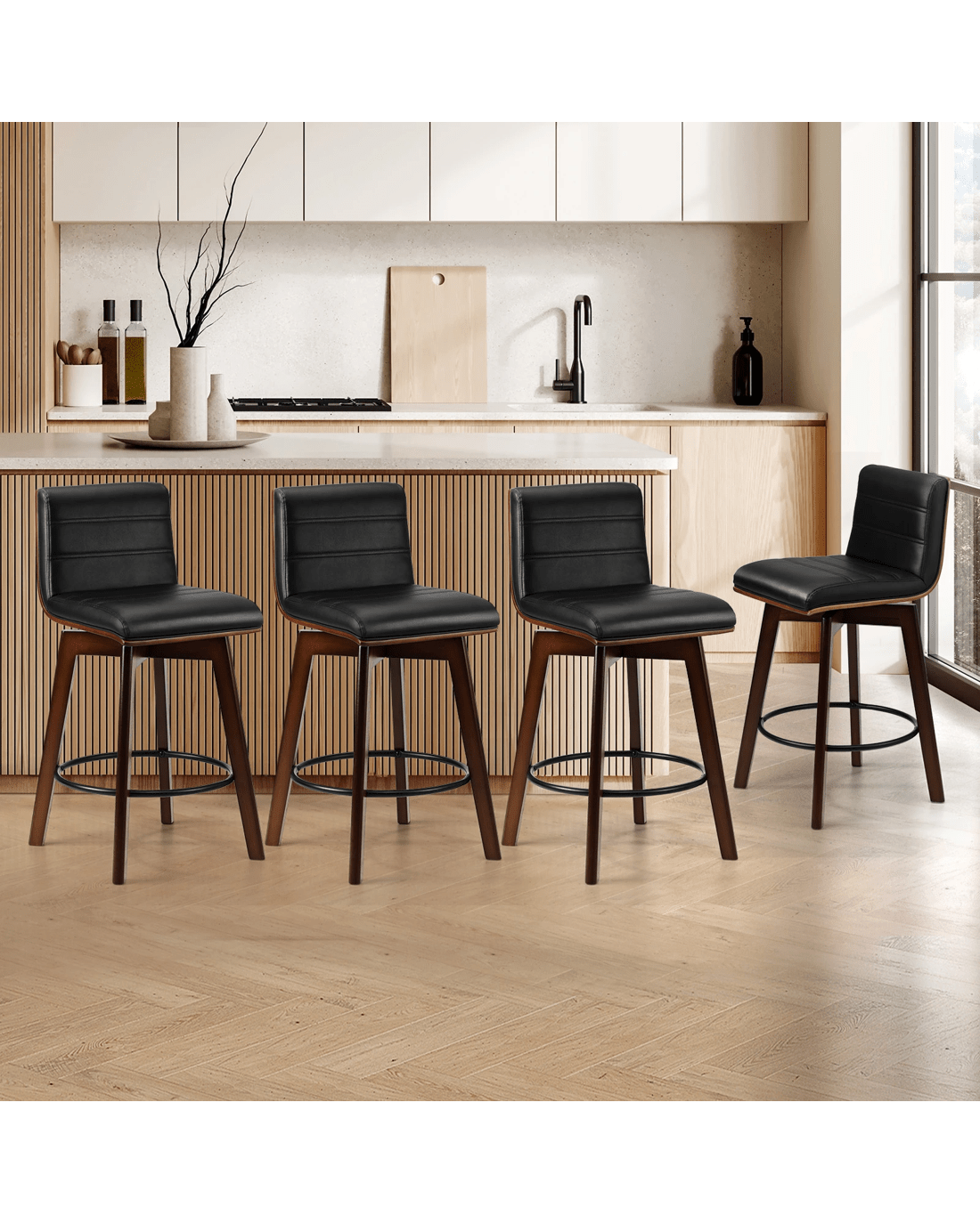 Sold by Kamprad's Oikos 1943Oikiture 4x Wooden Bar Stools Kitchen Counter Swivel Dining Chair Pu Leather - Black