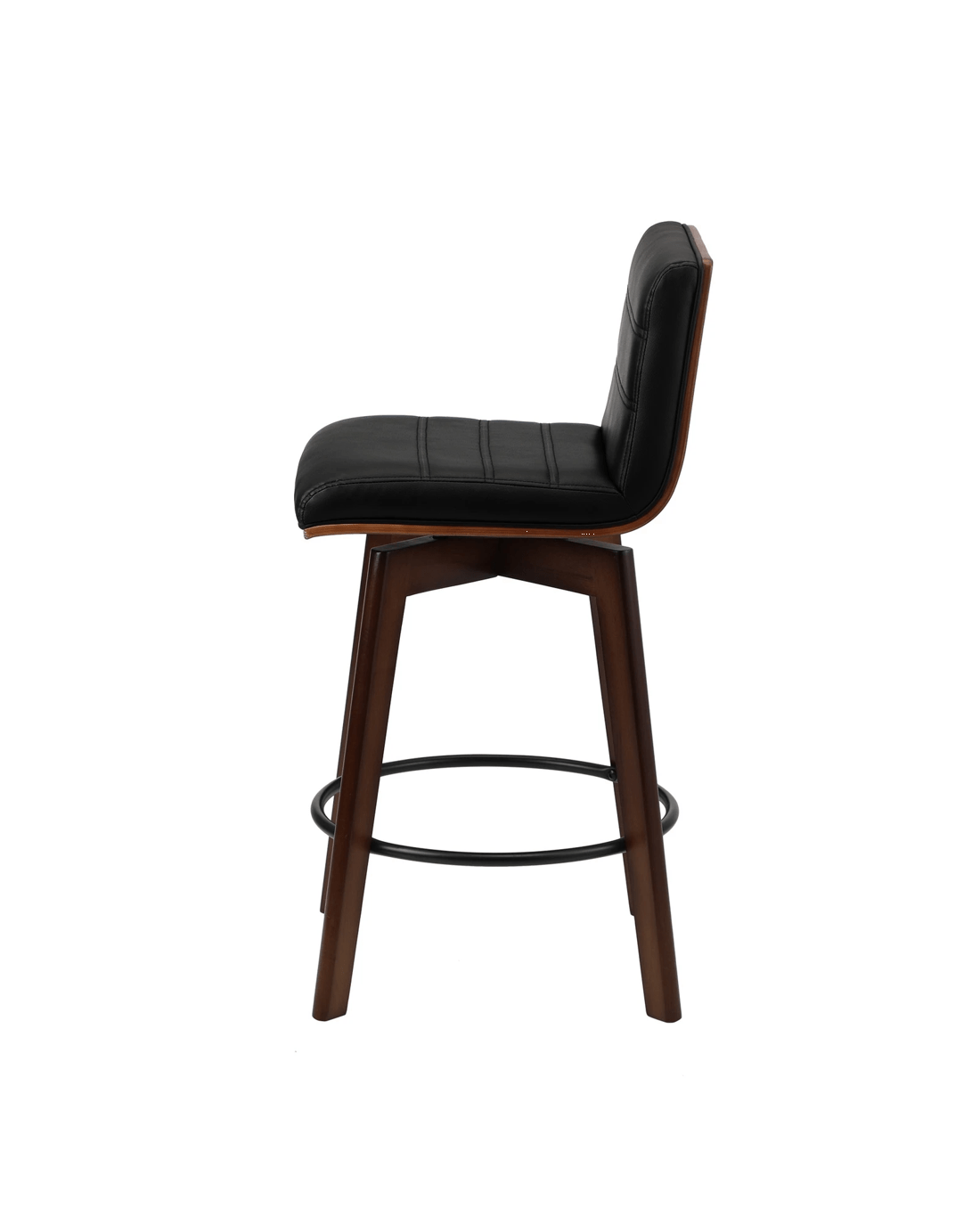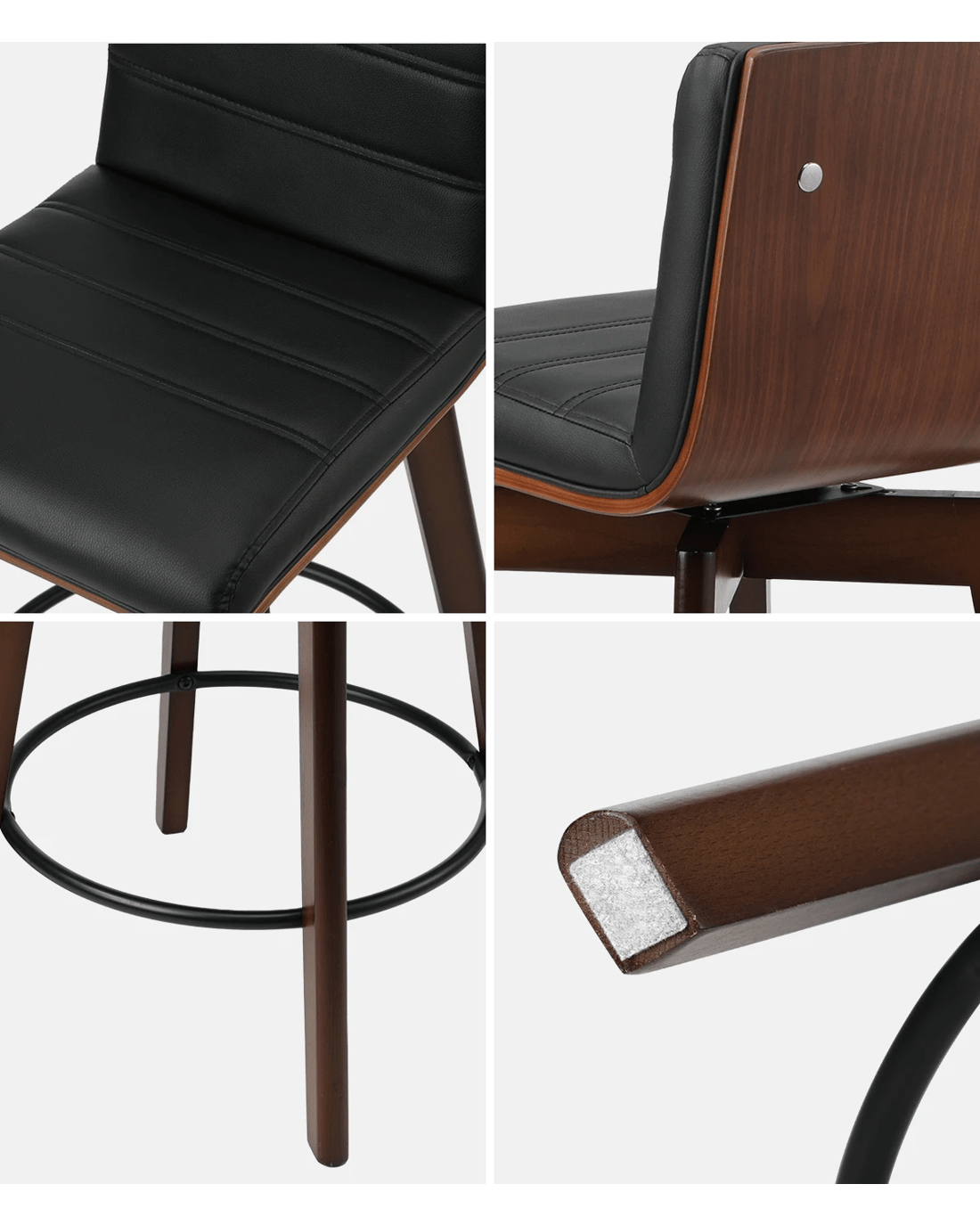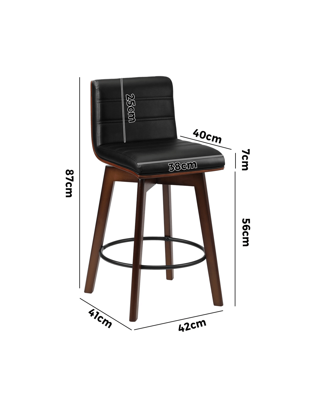 Sold by Kamprad's Oikos 1943Oikiture 4x Wooden Bar Stools Kitchen Counter Swivel Dining Chair Pu Leather - Black