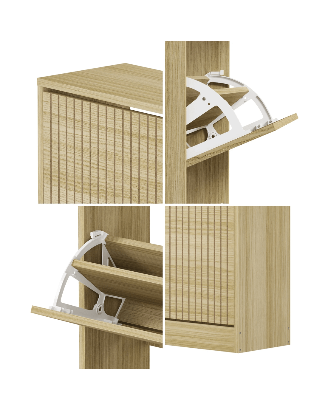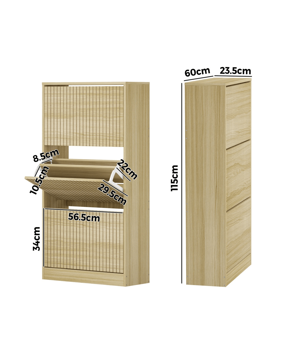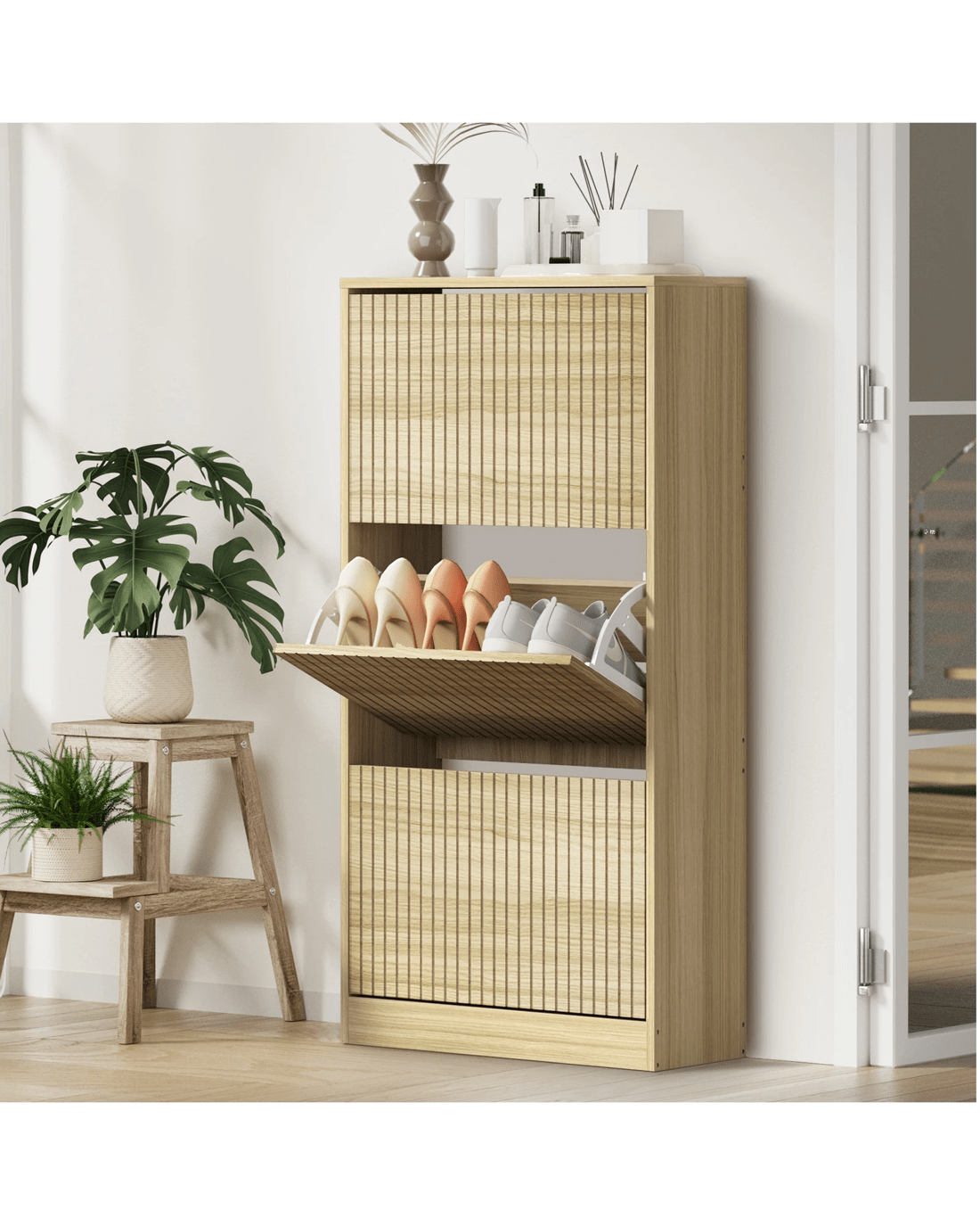 Sold by Kamprad's Oikos 1943Oikiture Shoe Rack Storage Cabinet Organiser Drawers 3 Doors - Natural