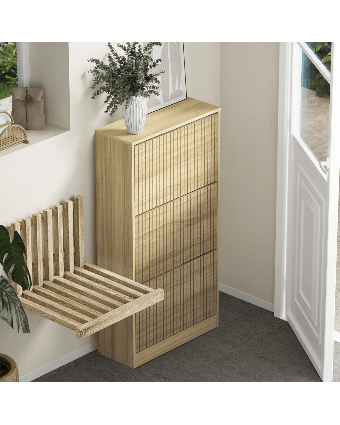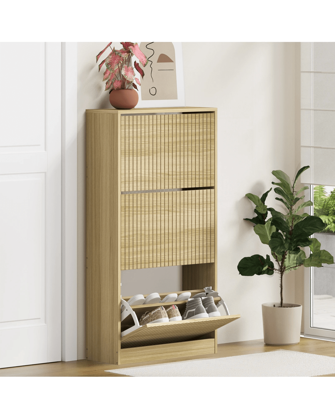 With its striped textured design, the Oikiture Shoe Storage Cabinet is as impressive as it is practical. The appealing profile makes the furniture piece a real standout in any discerning home decor and a stylish welcome to any entrance, hallway or doorway.