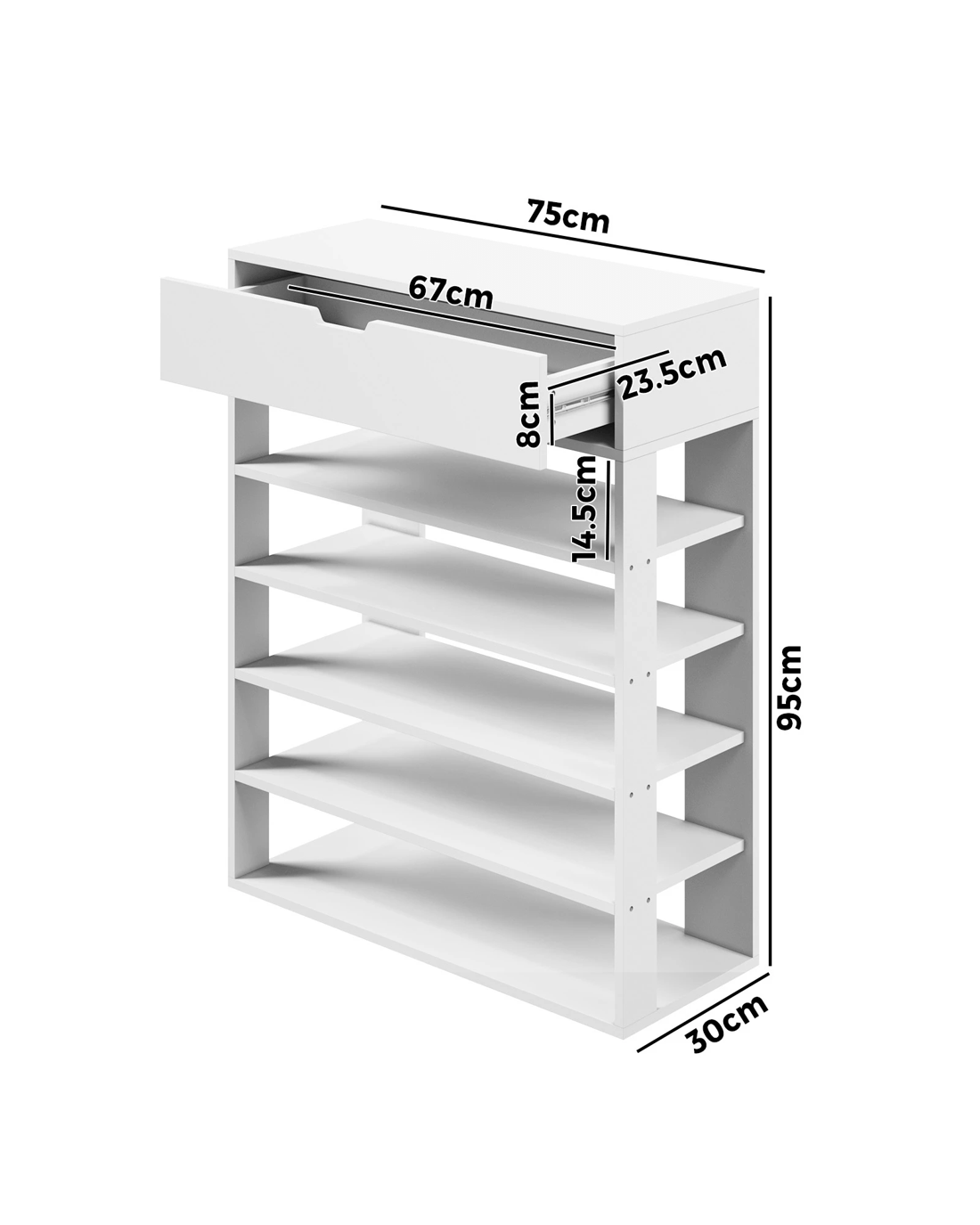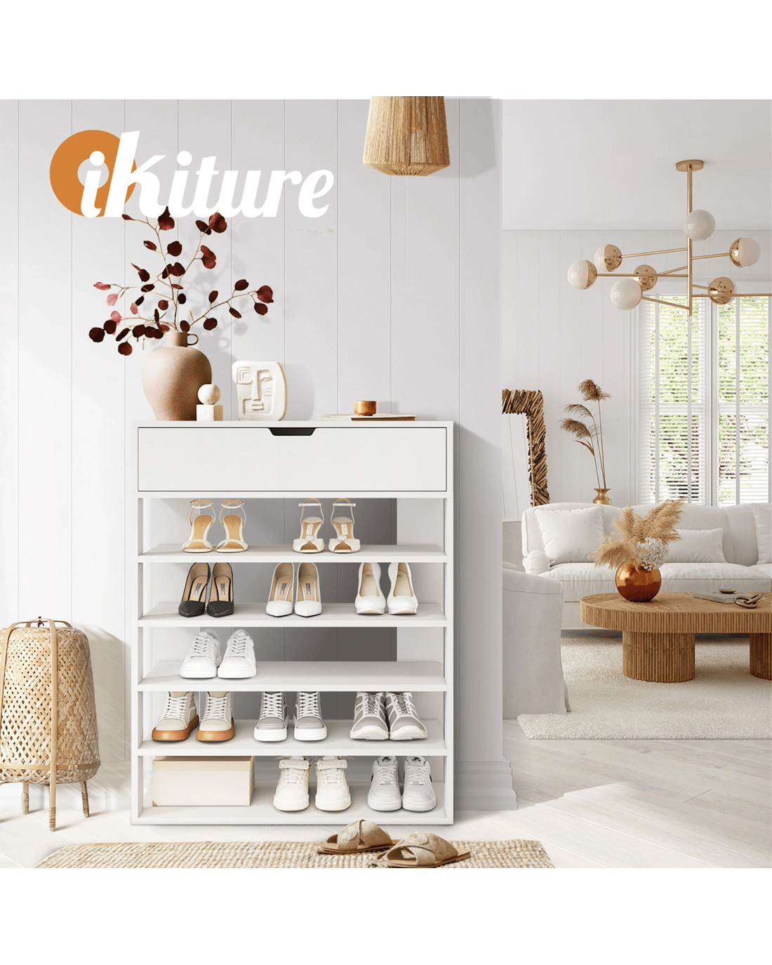 Sold by Kamprad's Oikos 1943Oikiture Shoes Storage Rack 5-tier Shelves Shoe Storage Cabinet Drawer - White