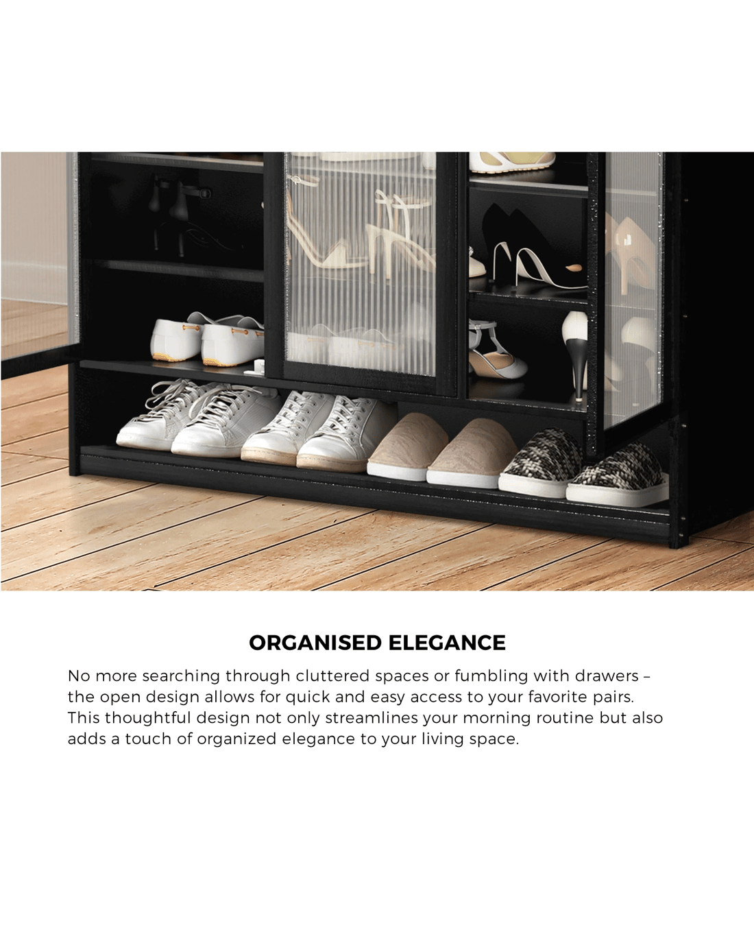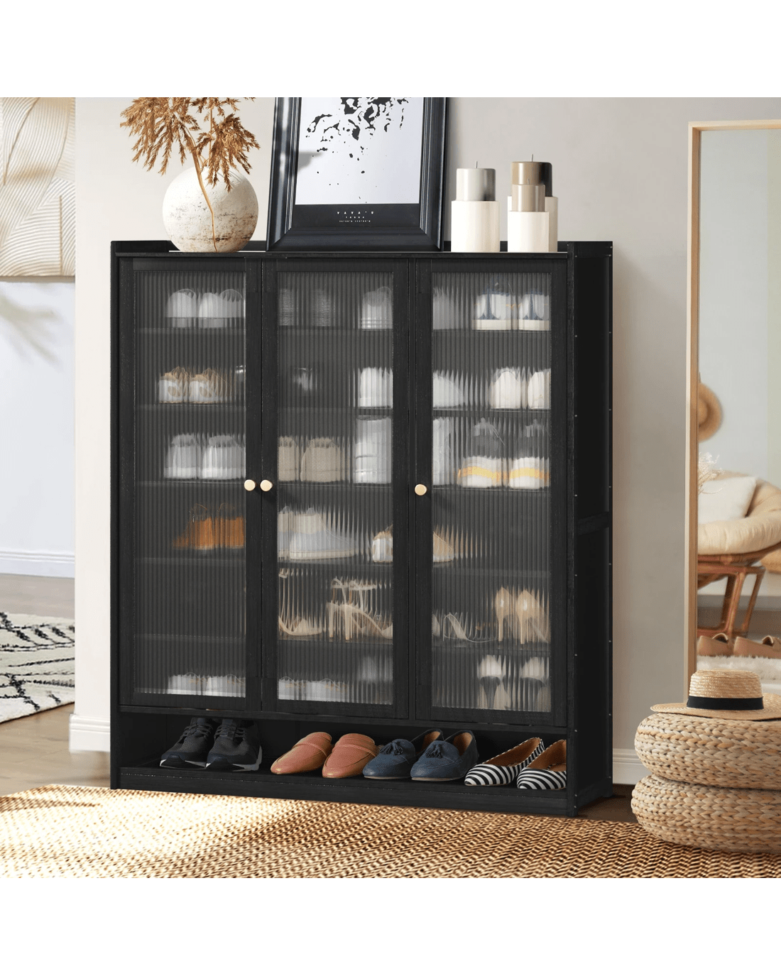 Adding a touch of class and sophistication to the ubiquitous shoe storage cabinet. The Oikiture Fluted Shoe Storage Cabinet is ready to present that bit of sparkle and flair to any hallway or entrance. With its three fluted cabinet doors, the shoe cabinet renders the ordinary extraordinary with eye-pleasing sensitivities.