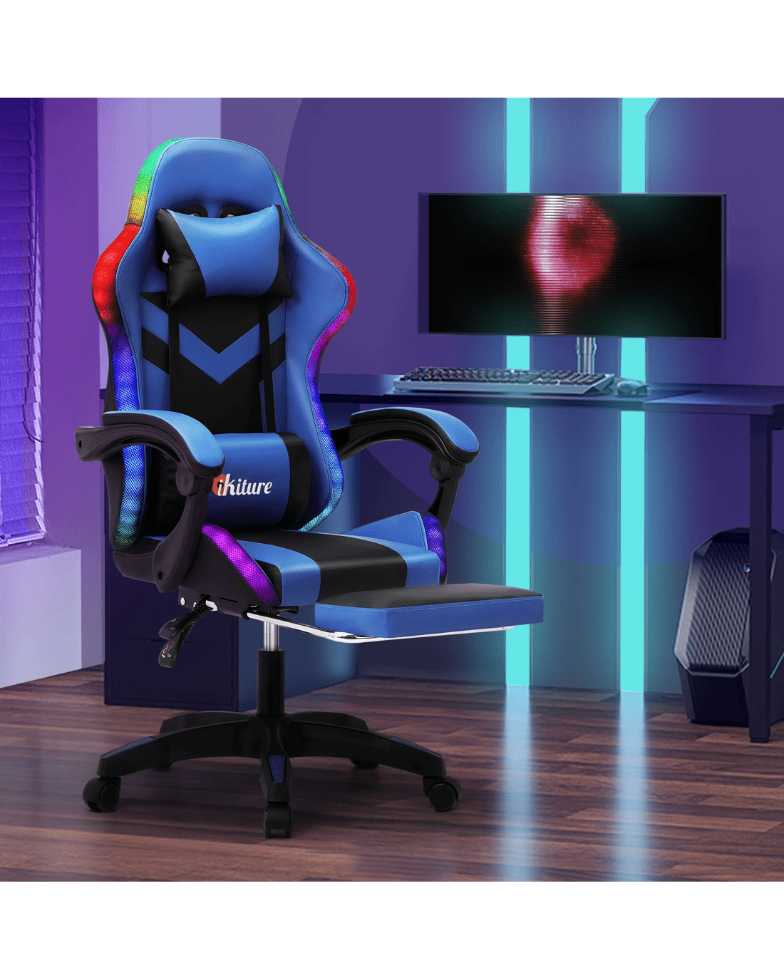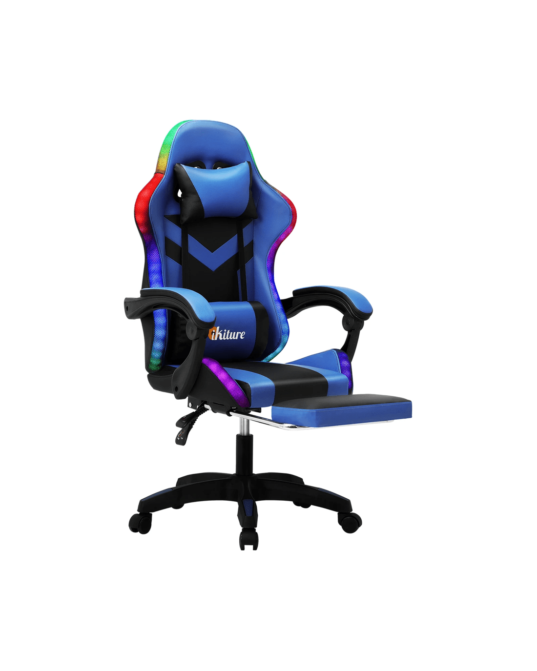 If you're into gaming or the gaming chair look, then this Oikiture LED Gaming Chair is right up your alley. Designed to create the perfect sitting positioning for play or work, our gaming chair is not short on creature comforts. Such as the plush leather seating, versatile adjustments, retractable footrest, smooth movements with omnidirectional castor wheels and certified quality components.