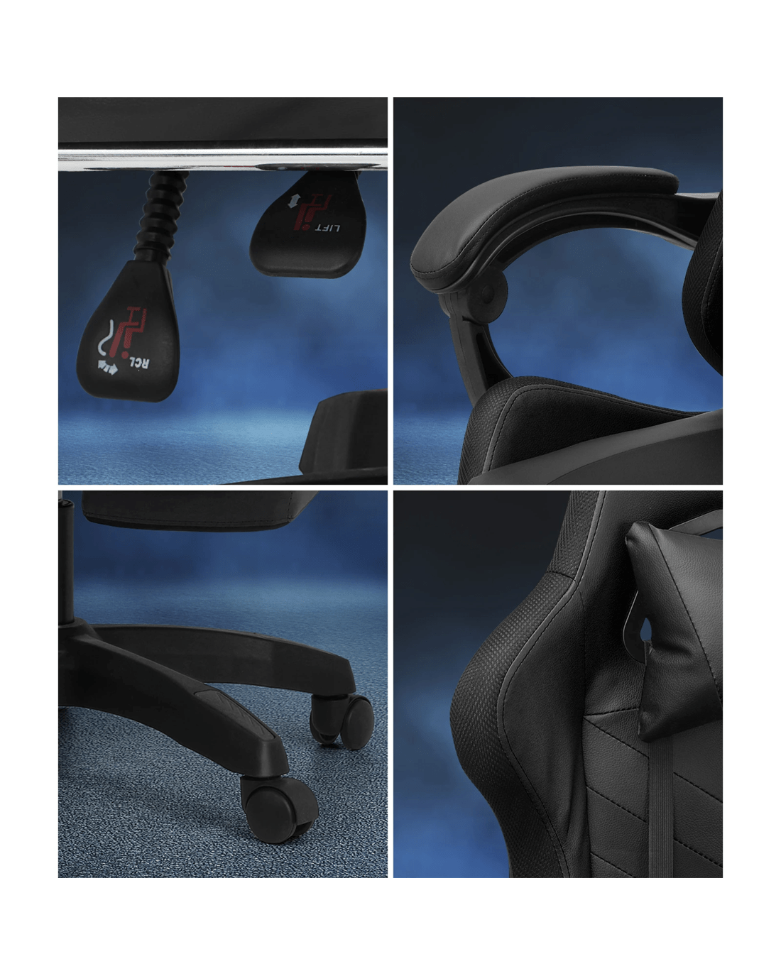 Oikiture 8-points Massage Gaming Chair Led - Black