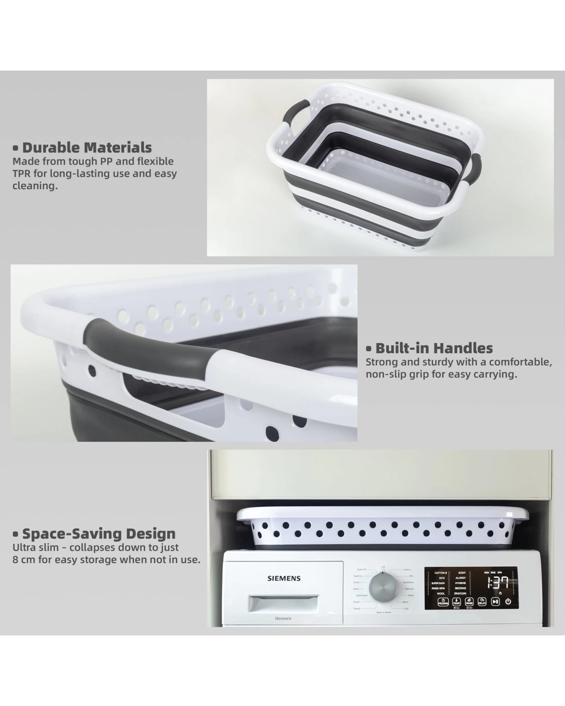 - Built-in Handles: Strong and sturdy with a comfortable, non-slip grip for easy carrying.