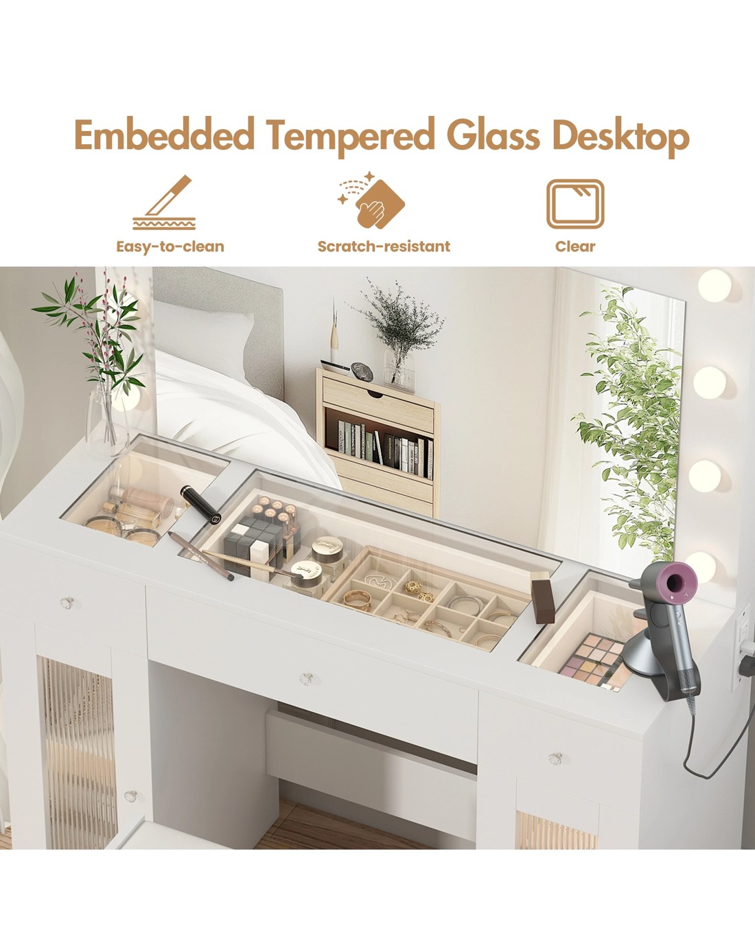 Sold by AdvwinAdvwin Dressing Table Set with Mirror Glass Top Power Outlet