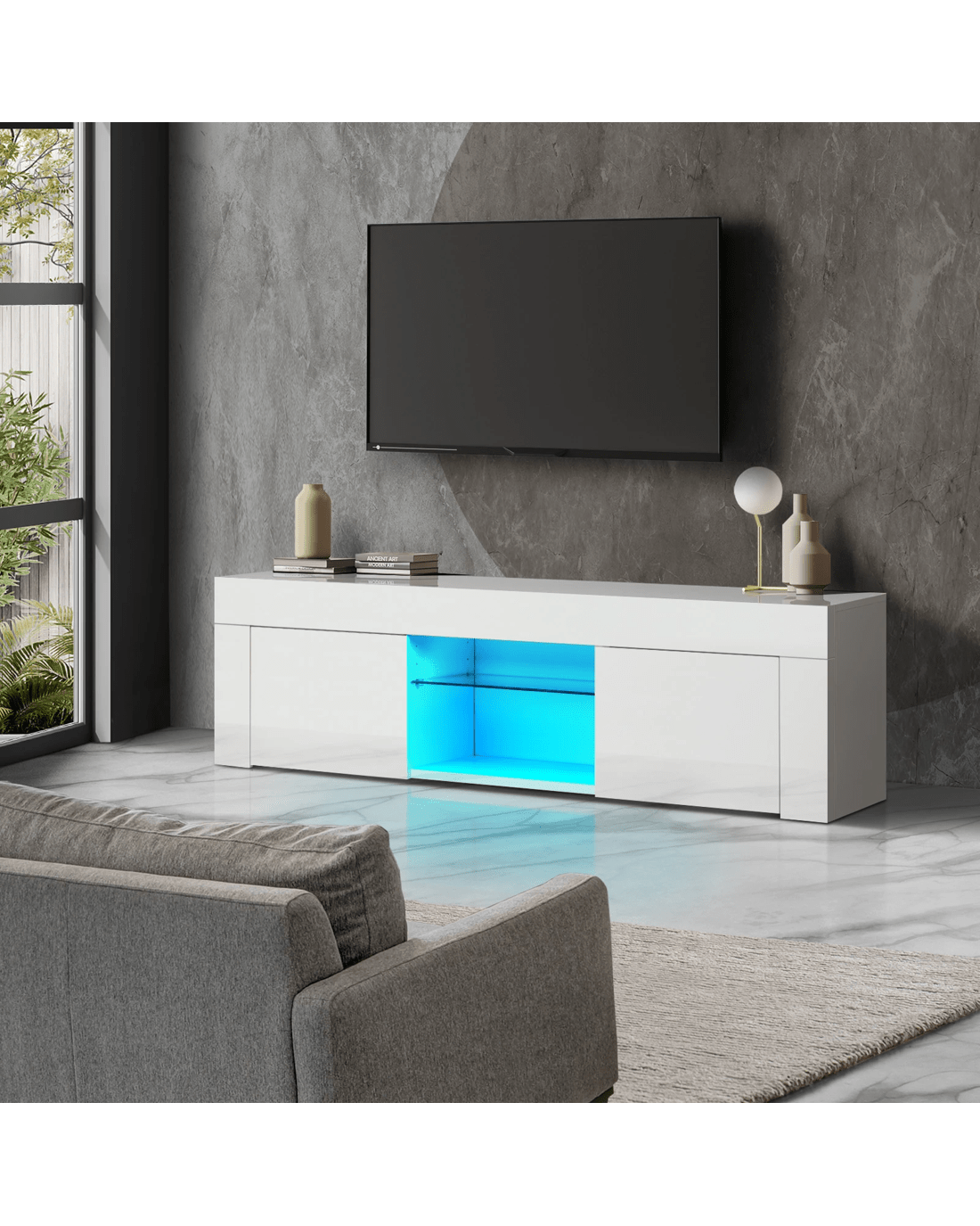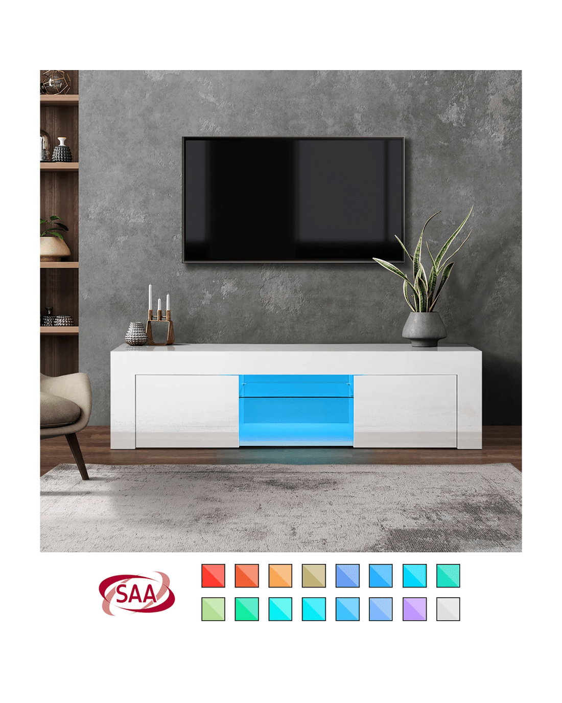 Sold by Kamprad's Oikos 1943Oikiture Tv Cabinet Entertainment Unit Stand Rgb Led Hight Gloss 130cm - White