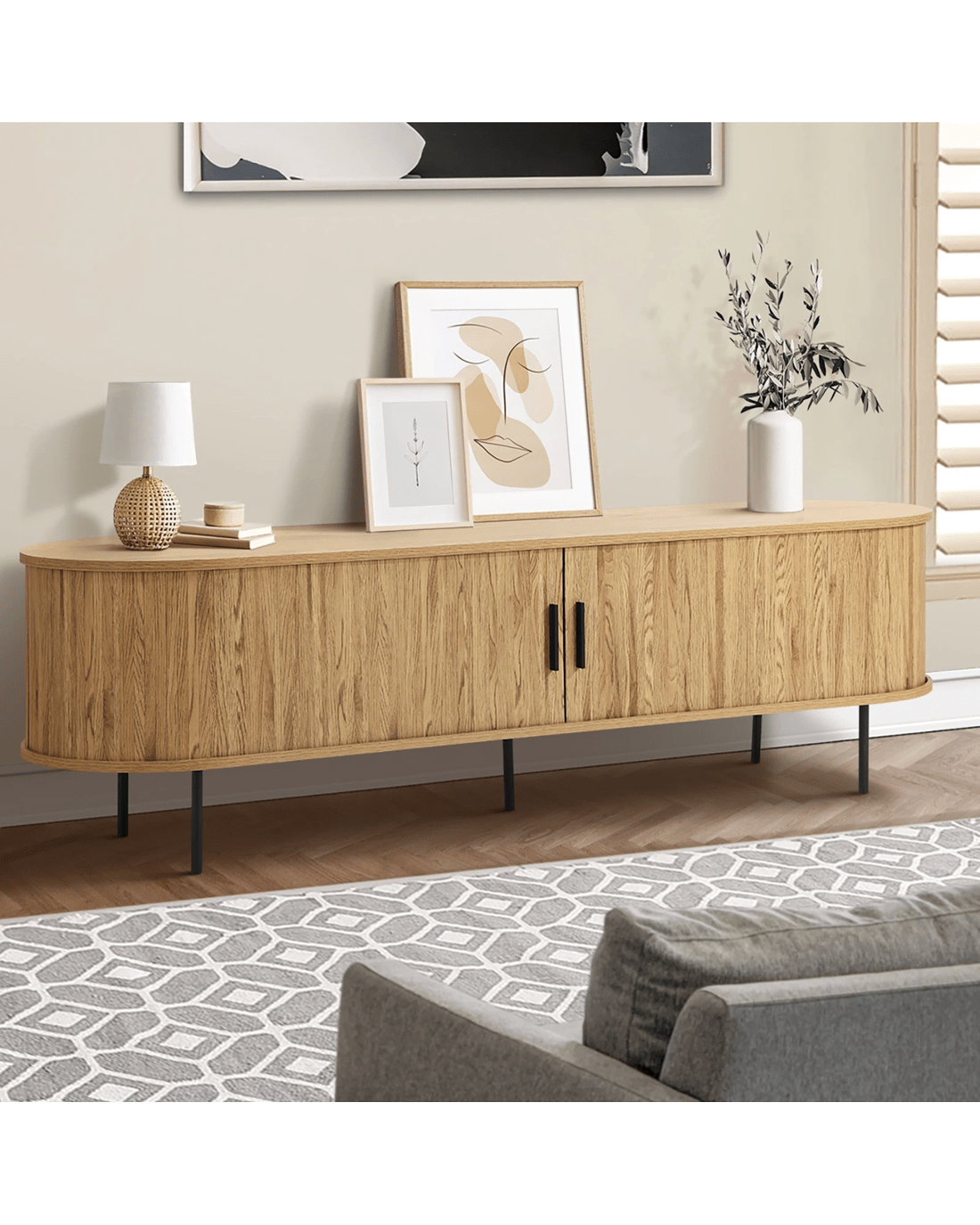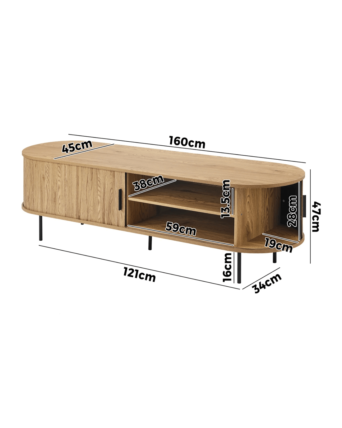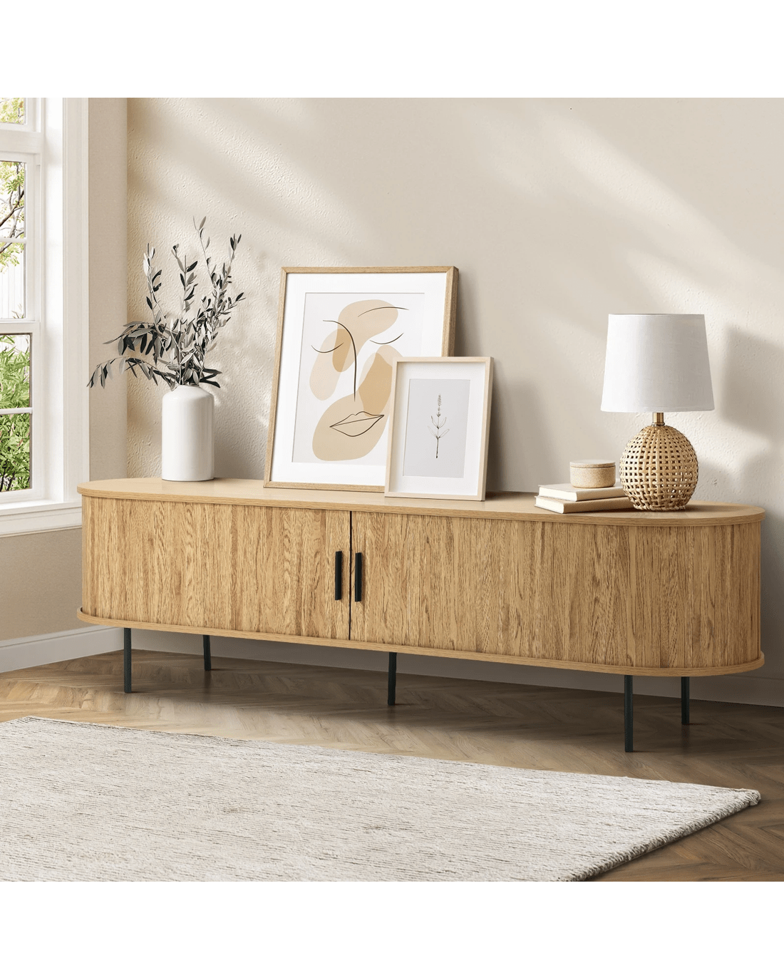 Sold by Kamprad's Oikos 1943Oikiture Entertainment Unit Tv Cabinet 160cm Tambour Sliding Doors - Natural