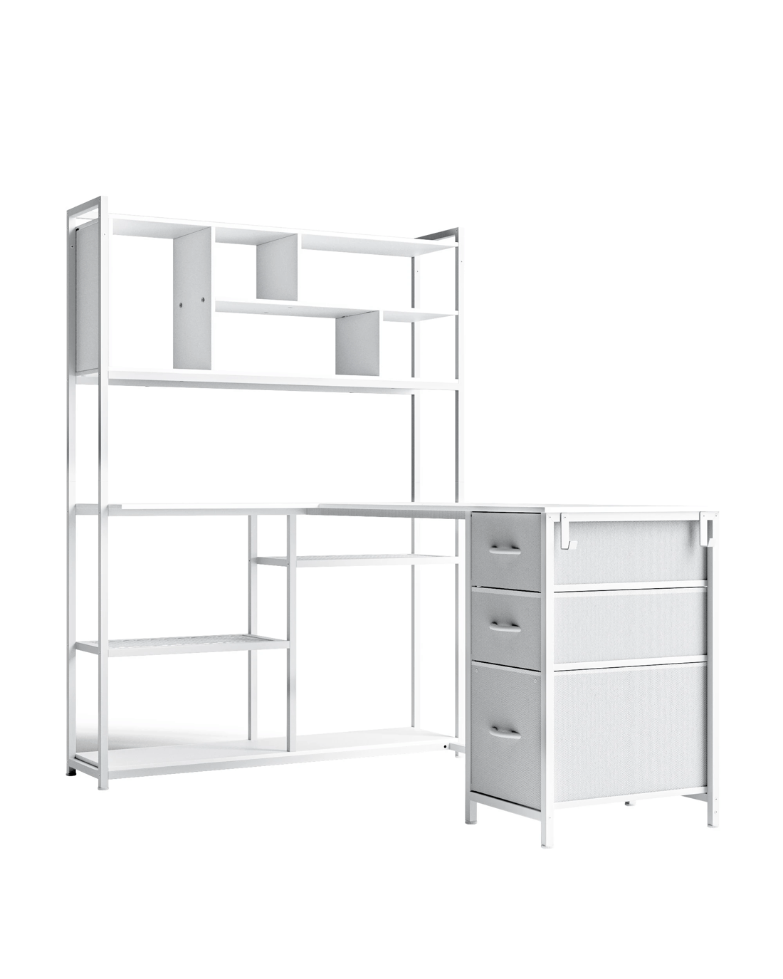 L shaped desk can be used for studying, working, placing computers, laptops, and iPads, the bookshelf next to it can hold magazines, wallpapers, plants, collectibles, etc. The reversible design and stylish style are perfect for any decor and furniture in your home.