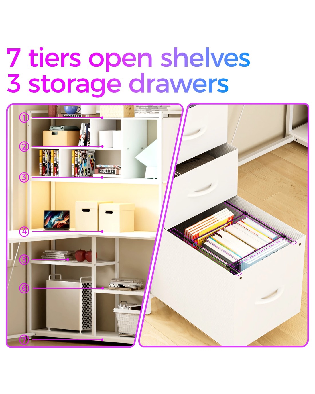 Advwin Gaming Desk integrated LED lights add an immersive ambiance. As a practical home office Computer Desk, not only it can be a table, but also it can be an bookcase bookshelf, display shelf. Elevate your workspace or gaming setup with this all-in-one corner desk designed for both style and functionality.