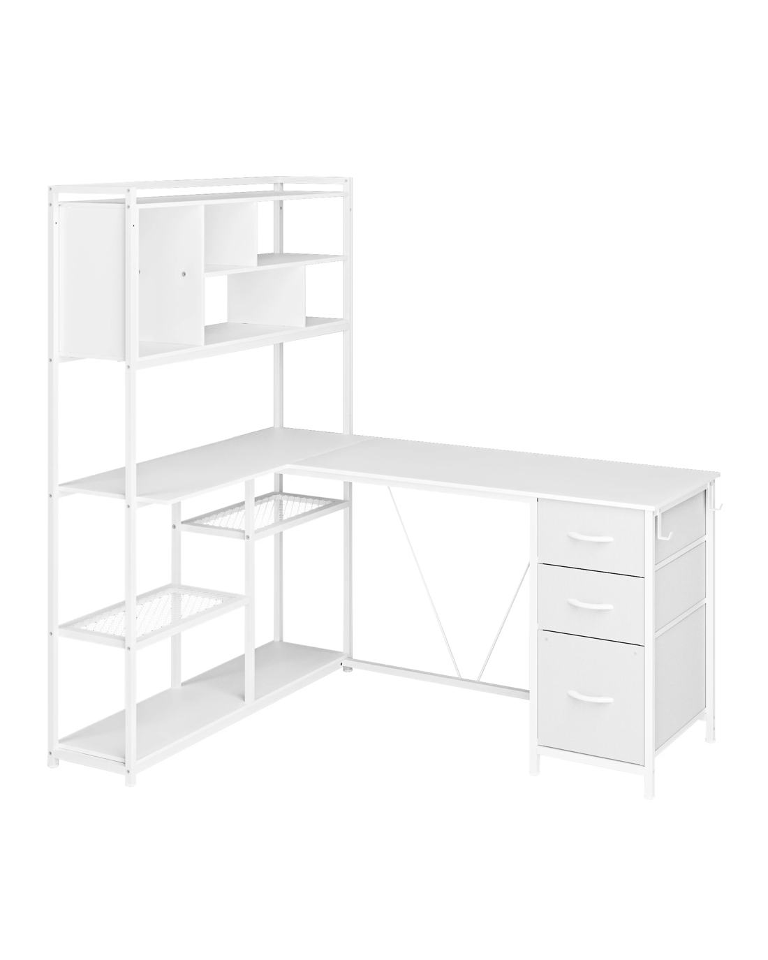 • Reversible Computer Desk: The L-shaped design is perfect for corners ,you can put two L-shaped tables together to form a "U"-shaped workstation. This office desk also has the option of placing the bookshelf on the left or right.