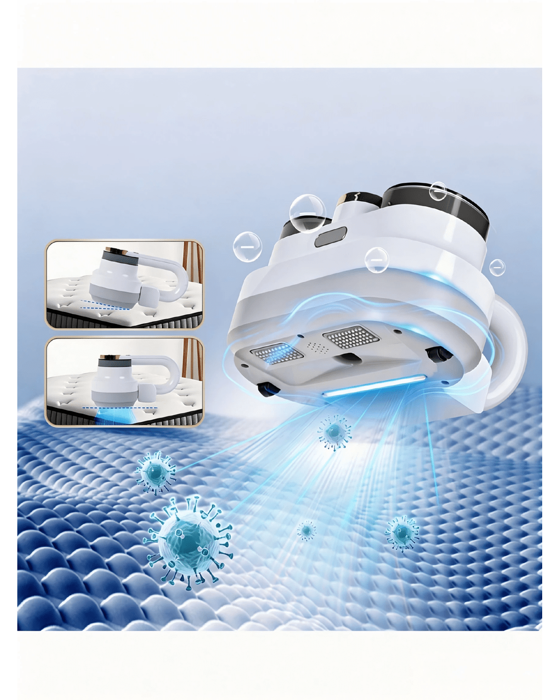 Experience a new level of cleanliness with our Cordless Dust Mite Vacuum Cleaner, designed for efficient and safe removal of mites, dust, and allergens from your home. Featuring four powerful cleaning modes - UV sterilization,ultrasonic vibration, flap tapping, and dehumidification - this versatile vacuum is ideal for deep-cleaning mattresses, sofas, bedding, and carpets.