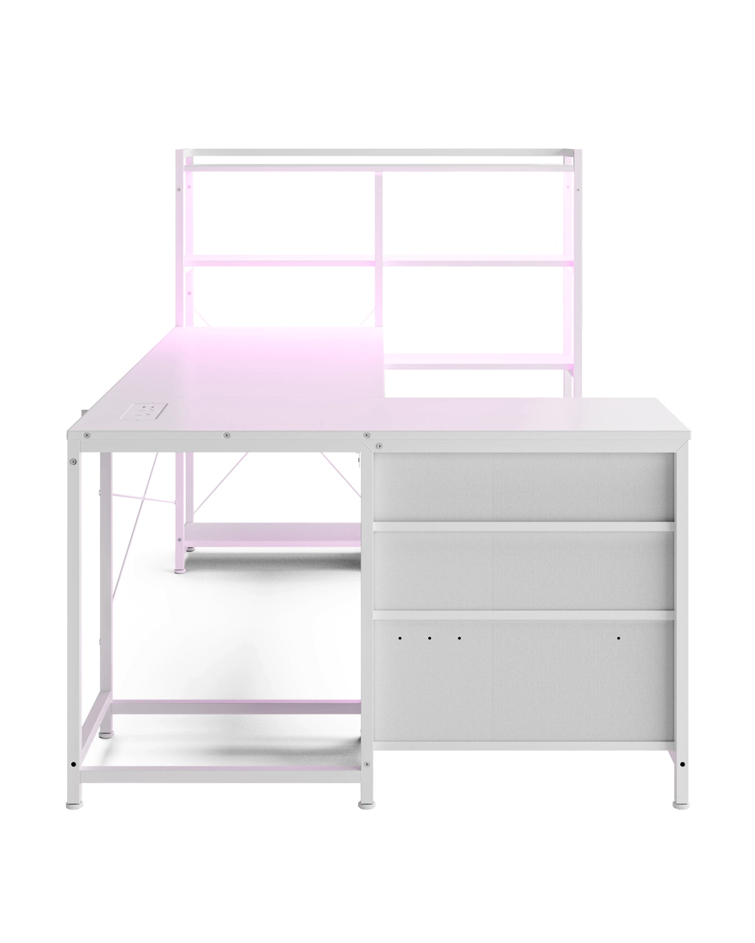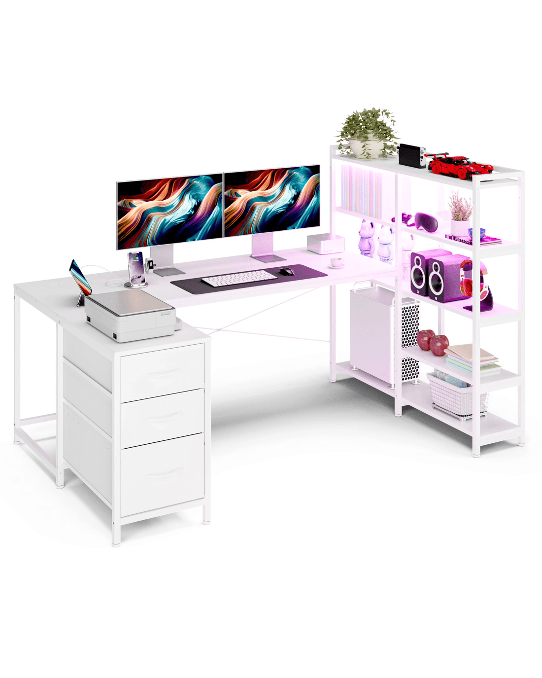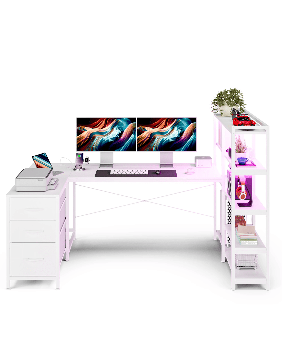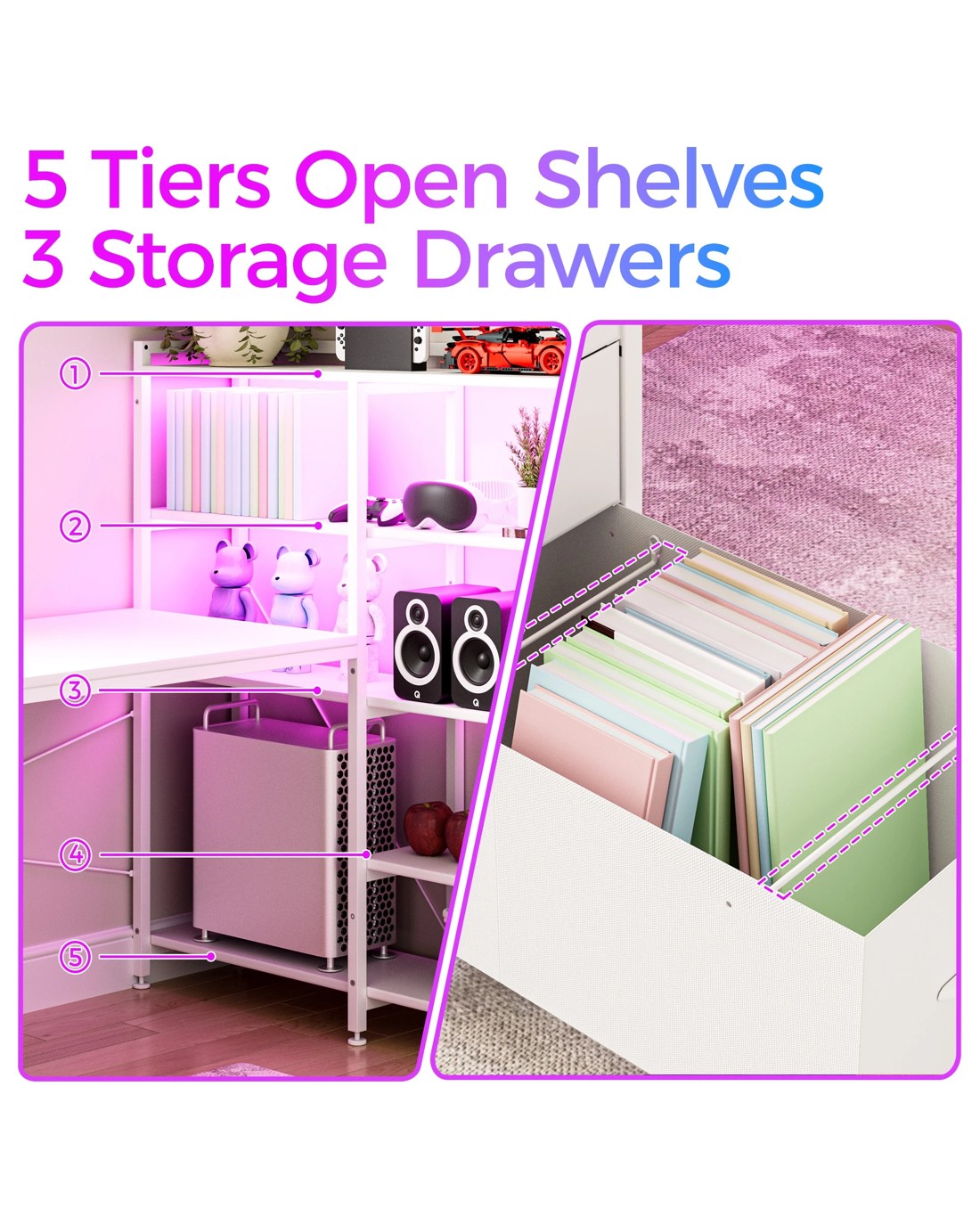 Advwin Gaming Desk integrated LED lights add an immersive ambiance, while the built-in power outlets, USB and Type-C ports ensure your devices are always charged and ready. As a practical home office Computer Desk, not only it can be a table, but also it can be an bookcase bookshelf, display shelf. Elevate your workspace or gaming setup with this all-in-one corner desk designed for both style and functionality.