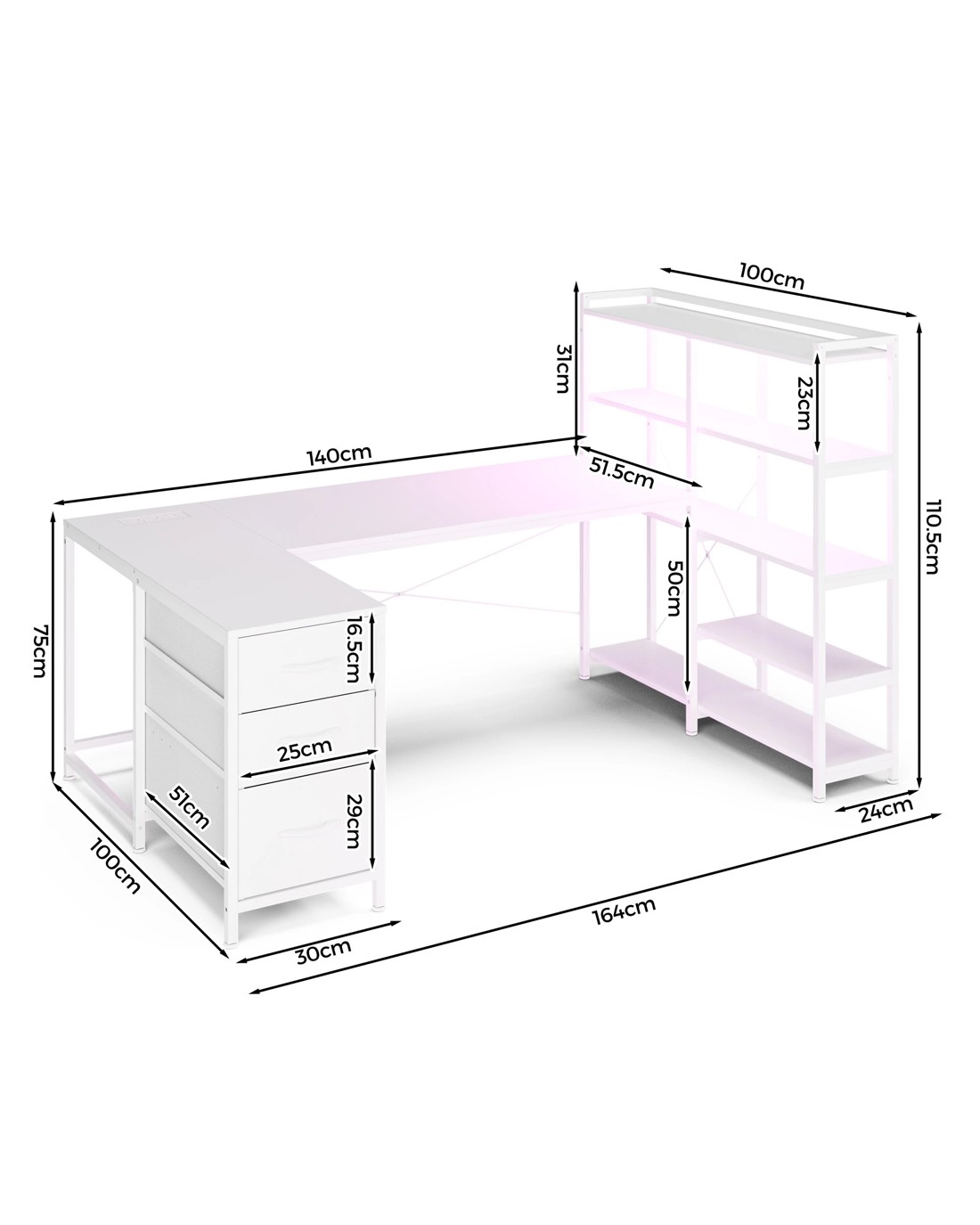 U shaped desk can be used for studying, working, placing computers, laptops, and iPads, the bookshelf next to it can hold magazines, wallpapers, plants, collectibles, etc. The reversible design and stylish style are perfect for any decor and furniture in your home.