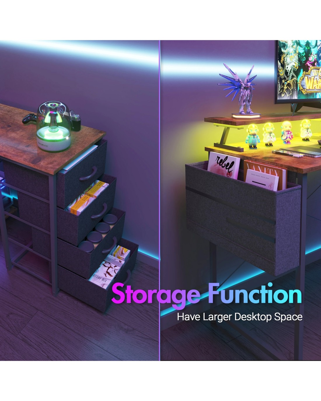 The integrated LED lights add an immersive ambiance, while the built-in power outlets and USB ports ensure your devices are always charged and ready. The added monitor stand optimizes screen placement for improved ergonomics. Elevate your workspace or gaming setup with this all-in-one corner desk designed for both style and functionality.