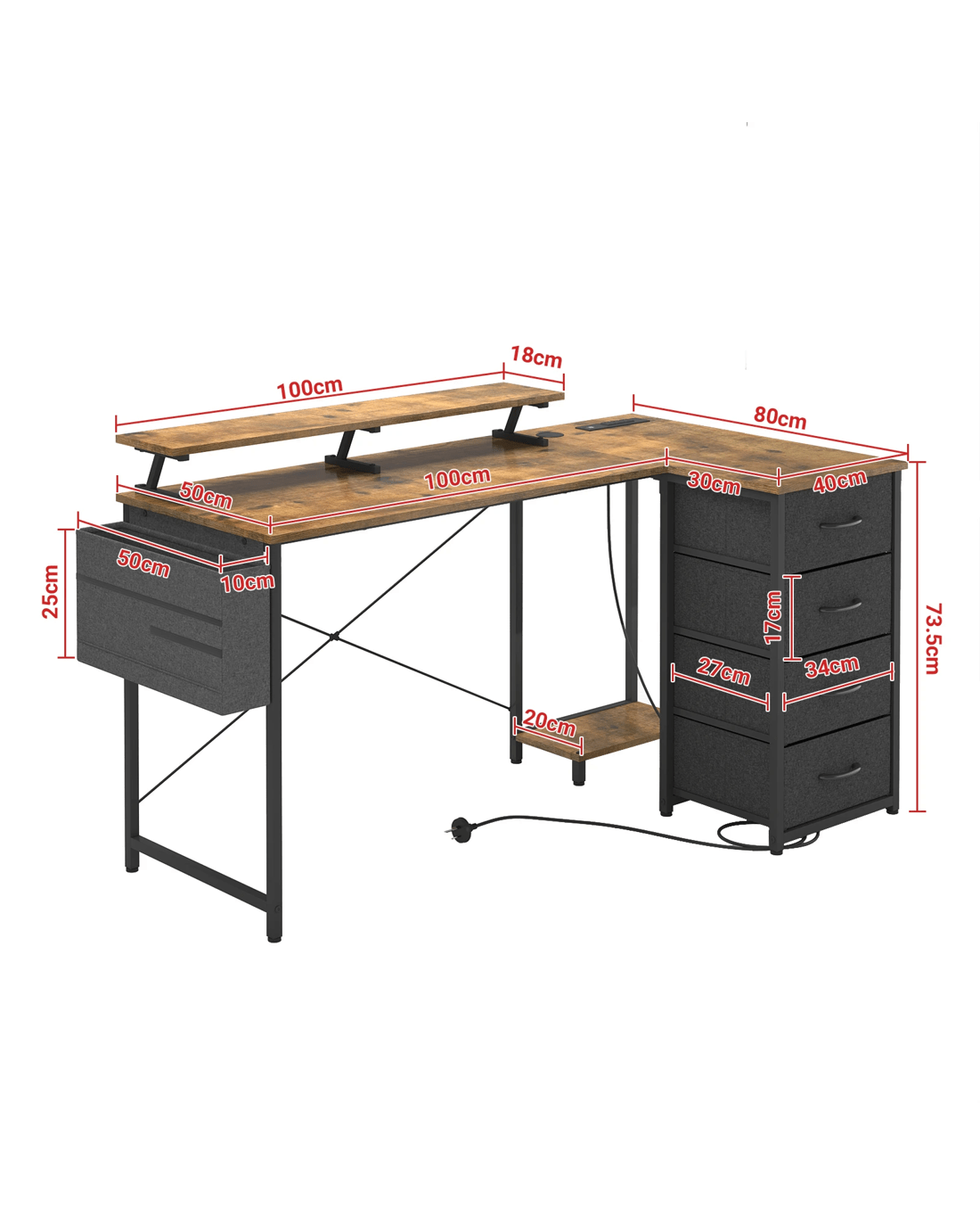 • Gaming Desk With Charging Station: Say goodbye to tangled cords and power strips cluttering your gaming area. The l shaped gaming desk includes a built-in socket with 2-Outlet & USB Ports. Make it easy and convenient to power your computer, smartphone, or gaming gear.
