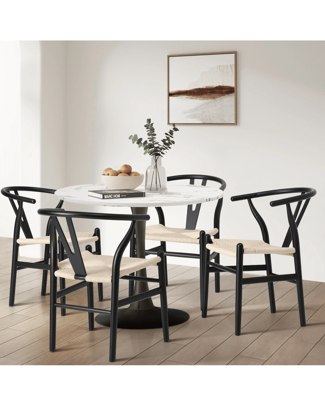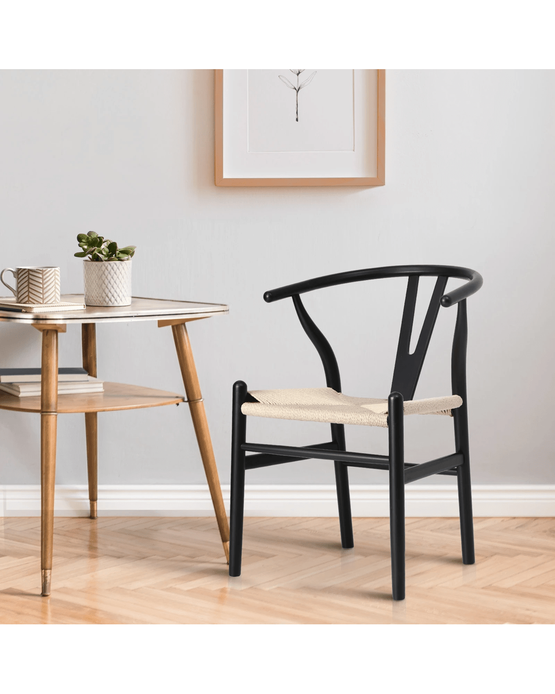 Sold by Kamprad's Oikos 1943Oikiture Dining Chair Wooden Hans Wegner Chair Wishbone Cafe Lounge Seat - Black