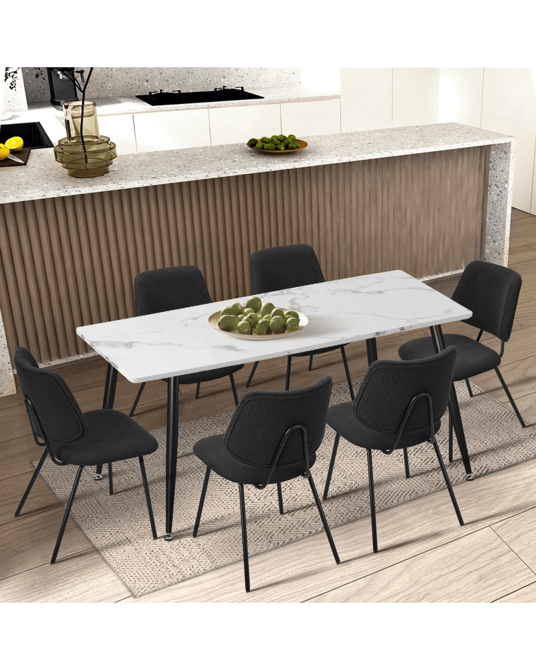 Aesthetically, the dining chair is simply captivating with its sleek powder-coated metal legs in chic black to accentuate the rich and rounded profile of the chair. Harmonious geometry in perfect balance.