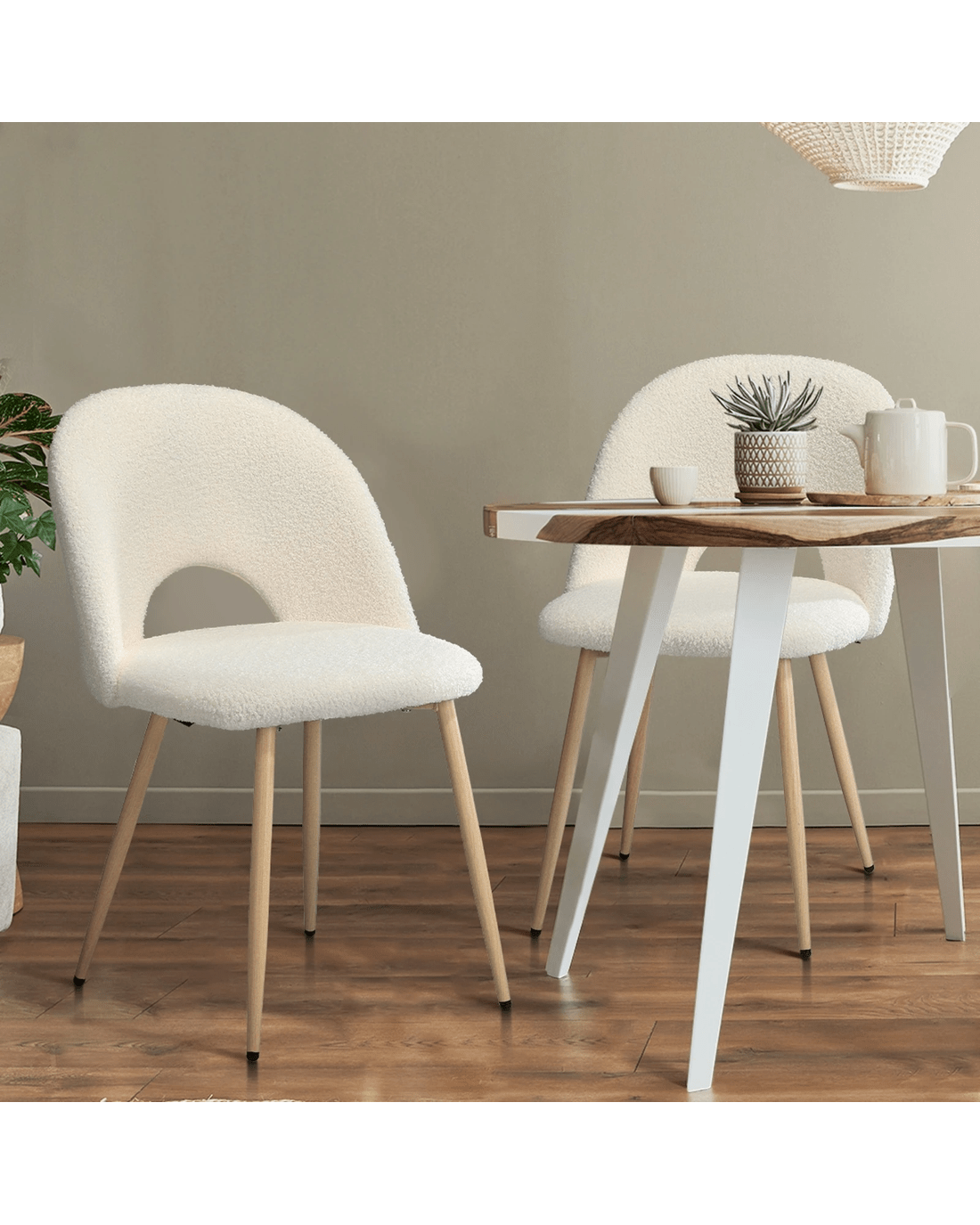 Sold by Kamprad's Oikos 1943Oikiture 4pcs Dining Chairs Sherpa Accent Chair Timber-look Legs - White