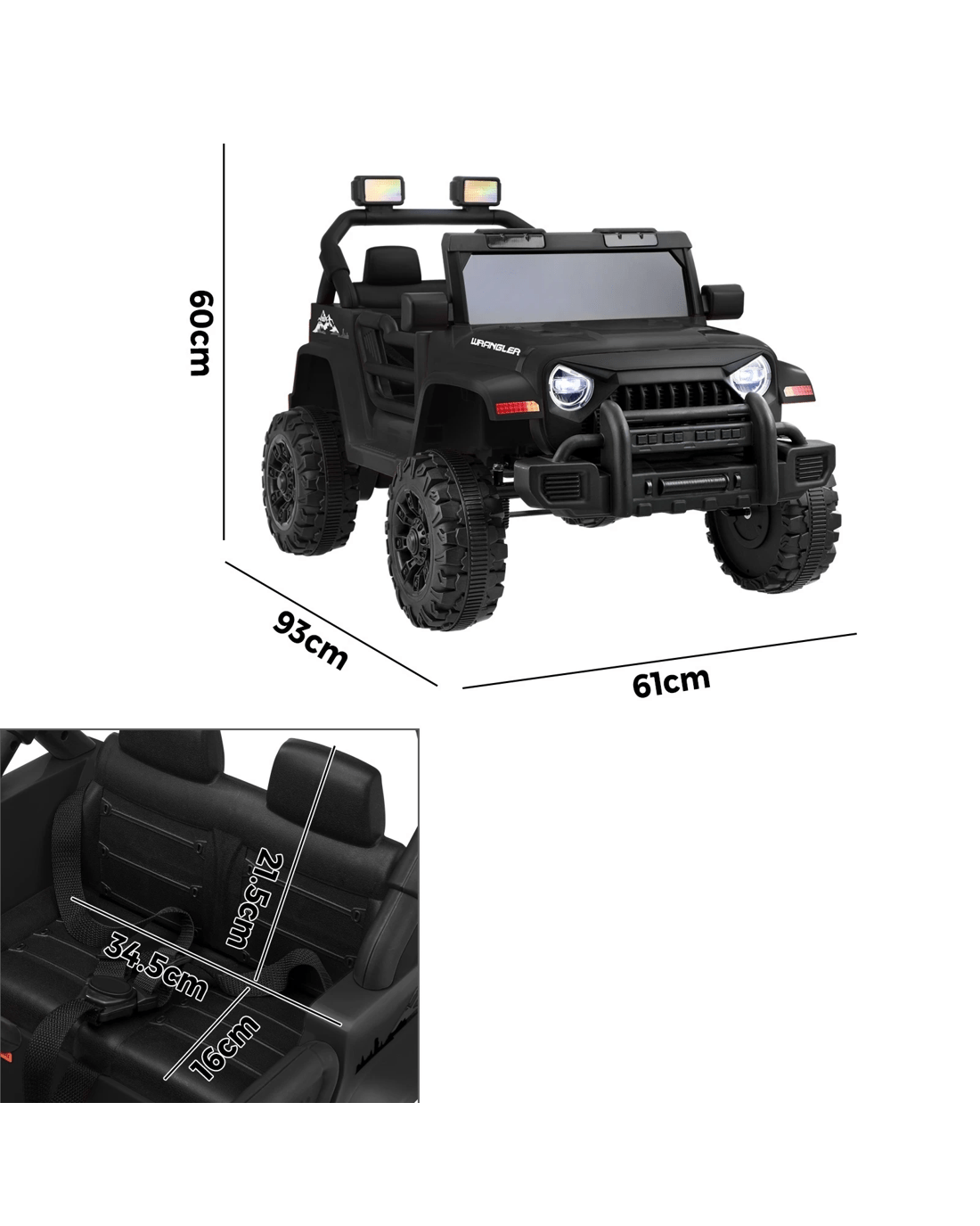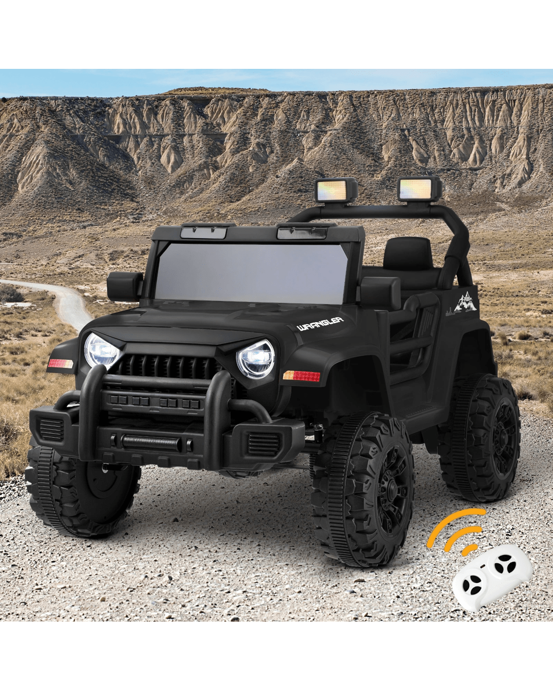 Fun on wheels. Thrills in motion. This Mazam Wrangler-inspired Ride On Car is ready to let your kid have exhilarating times with every drive. With its rugged profile, the vehicle is designed to deliver the looks and the passion. An iconic jeep-like body with flared fenders, striking headlights, chunky bumpers and brawny wheels and tyres, the vehicle also gets a simulated roll-over bar with twin decorative spotlights. The styling is definitely bold and formidable for any adventure on grass, gravel or concrete.