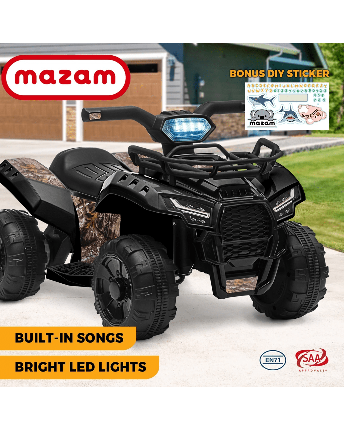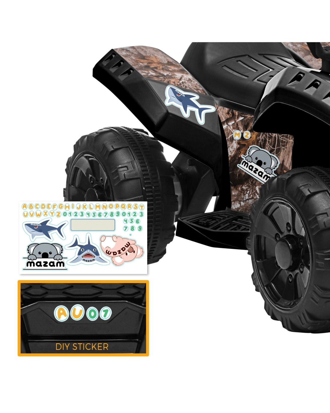 With its rugged looks, our MAZAM Ride On ATV takes on a purposeful stance from any angle.