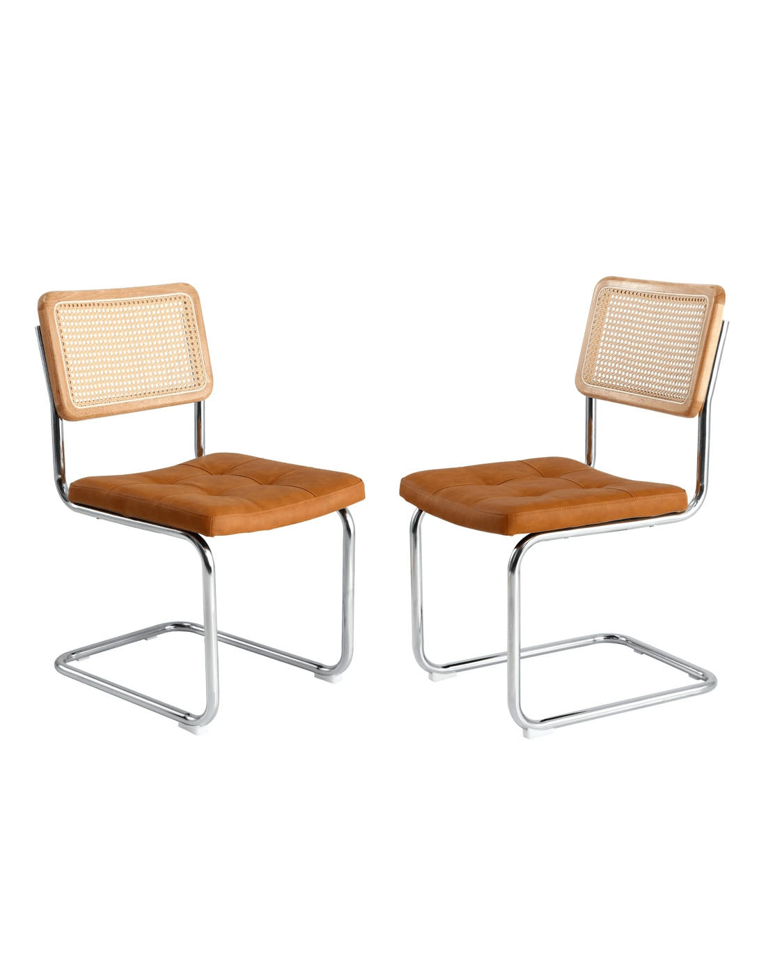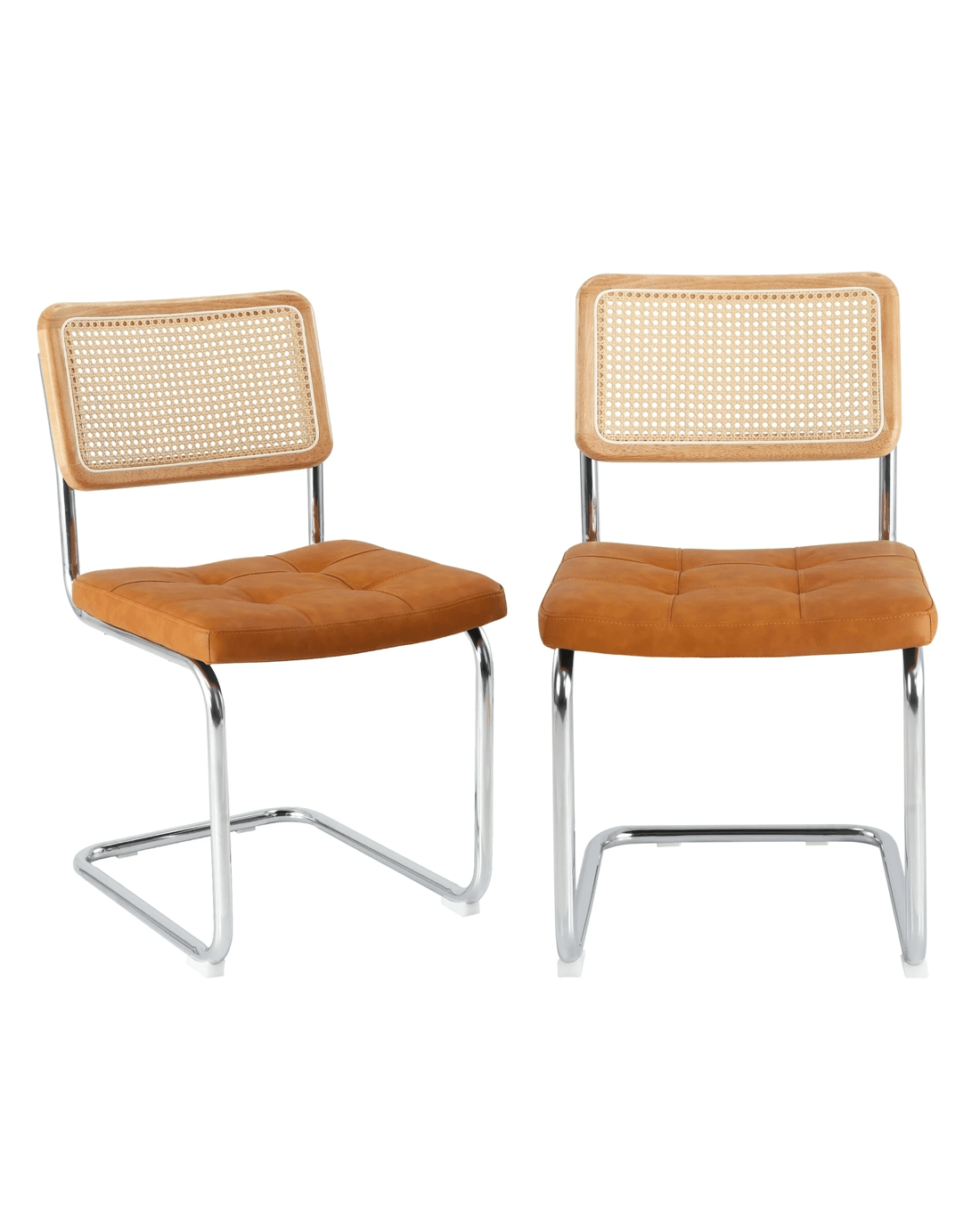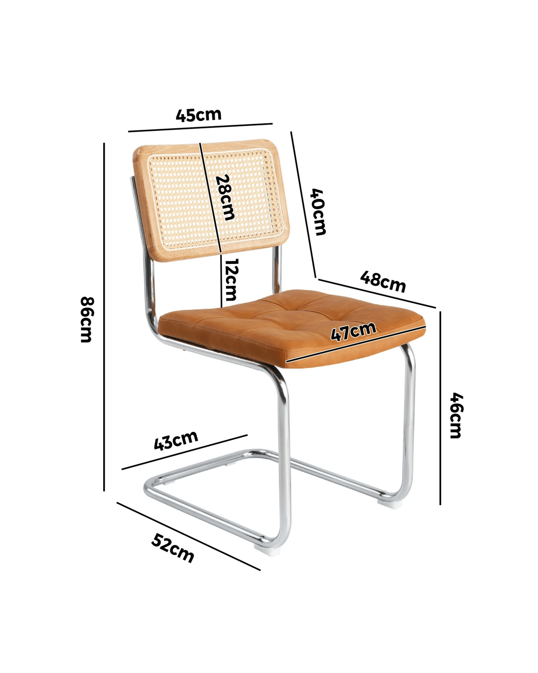 Sold by Kamprad's Oikos 1943Oikiture 2x Rattan Dining Chair Cesca Replica Cantilever Pu Leather Padded - Brown