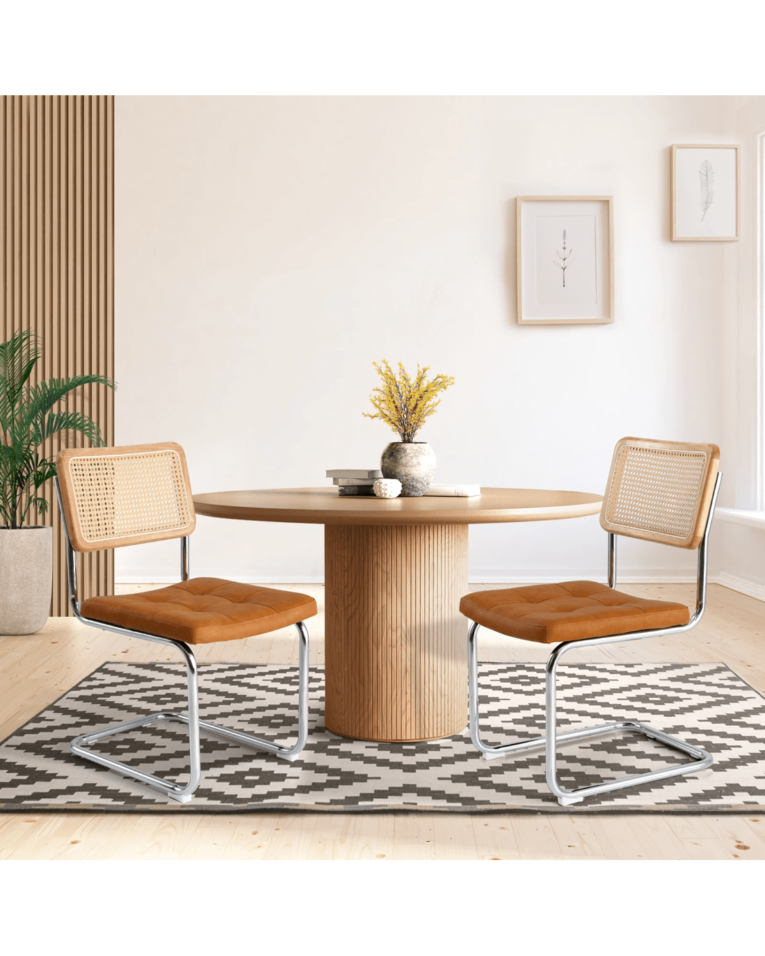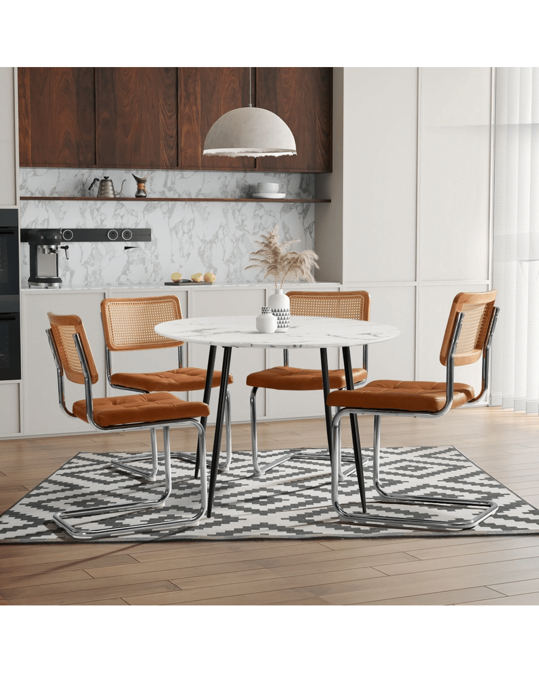 With the easy-to-clean PU leather and PE rattan, these chairs are designed to withstand the demands of daily use while maintaining their attractive appearance, ensuring your dining space always looks its best.