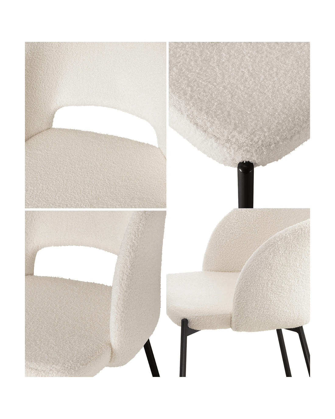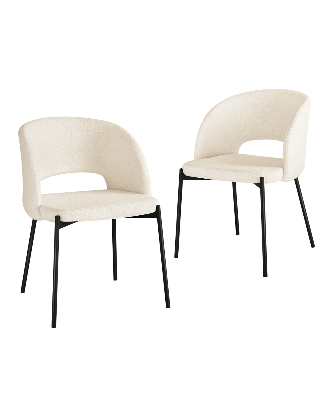 These dining chairs are adorned with sumptuously soft and plush Sherpa upholstery, reminiscent of the coziest winter blankets. Sink into the welcoming embrace of this chair, enjoying hours of comfortable dining. The metal legs of this dining chair not only provide a sturdy and stable base but also add a modern touch to your dining area. Their clean lines and contemporary design perfectly complement the luxurious Sherpa fabric.