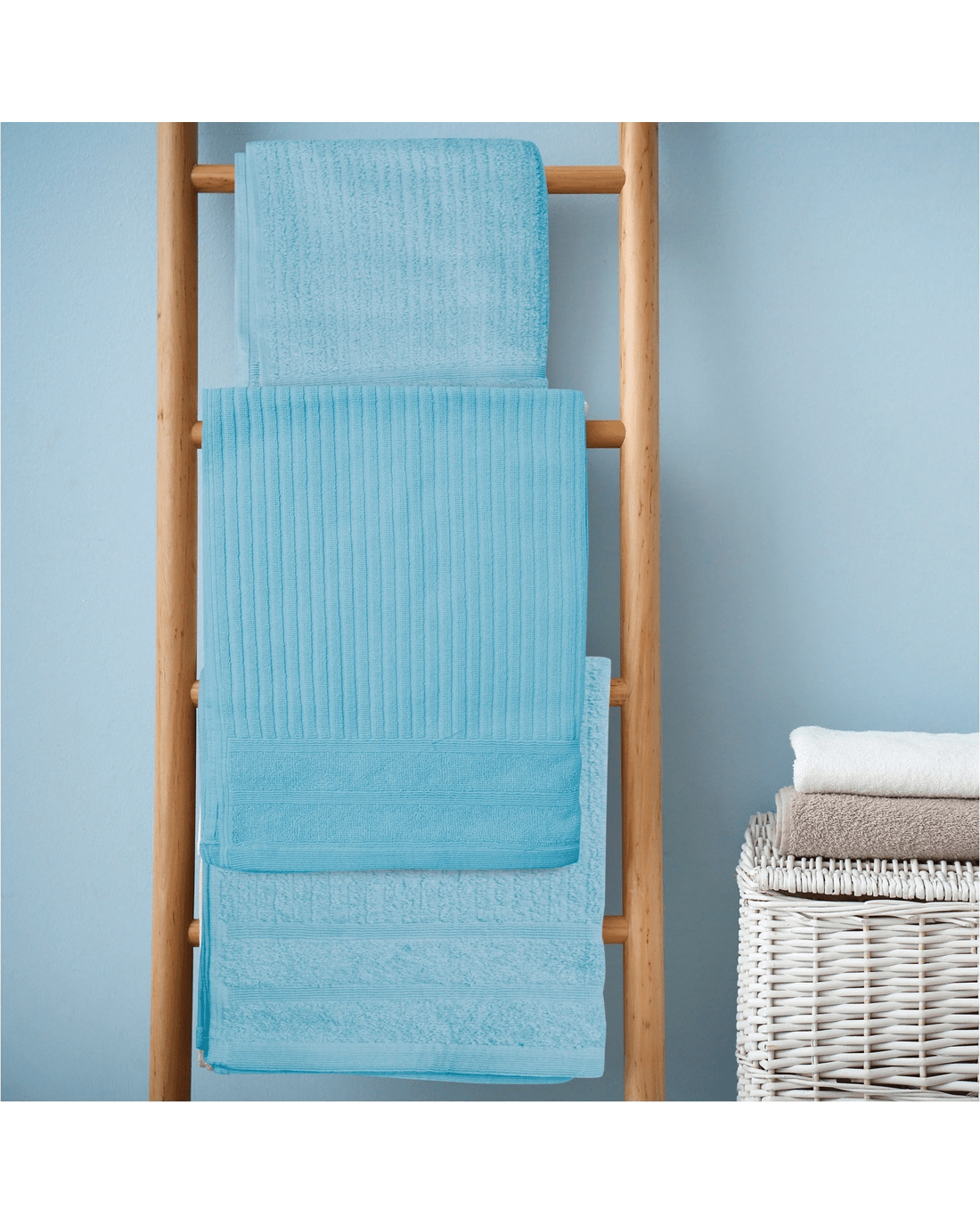 Made from 100% pure cotton, these towels offer softness, absorbency, and durability. The 600GSM weight provides a plush feel, while the vertical rib weave enhances texture and absorbency. Finished with a stylish double border, this set is available in multiple colours to complement any bathroom décor.
