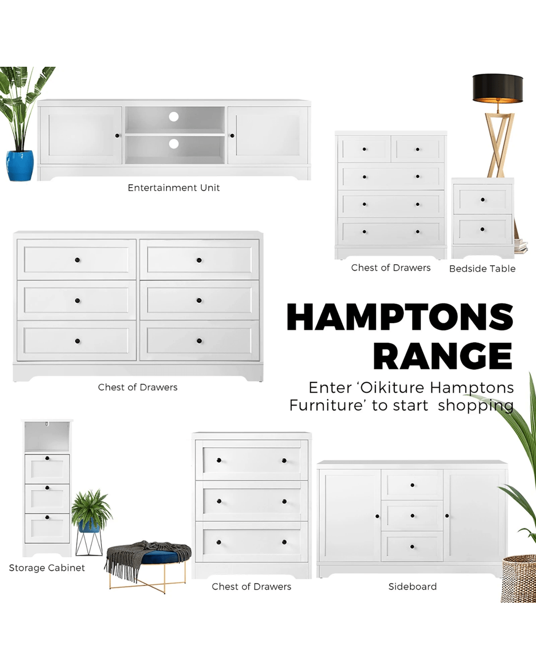 Sold by Kamprad's Oikos 1943Oikiture Chest Of Drawers Buffet Sideboard Storage Cabinet Hamptons - White