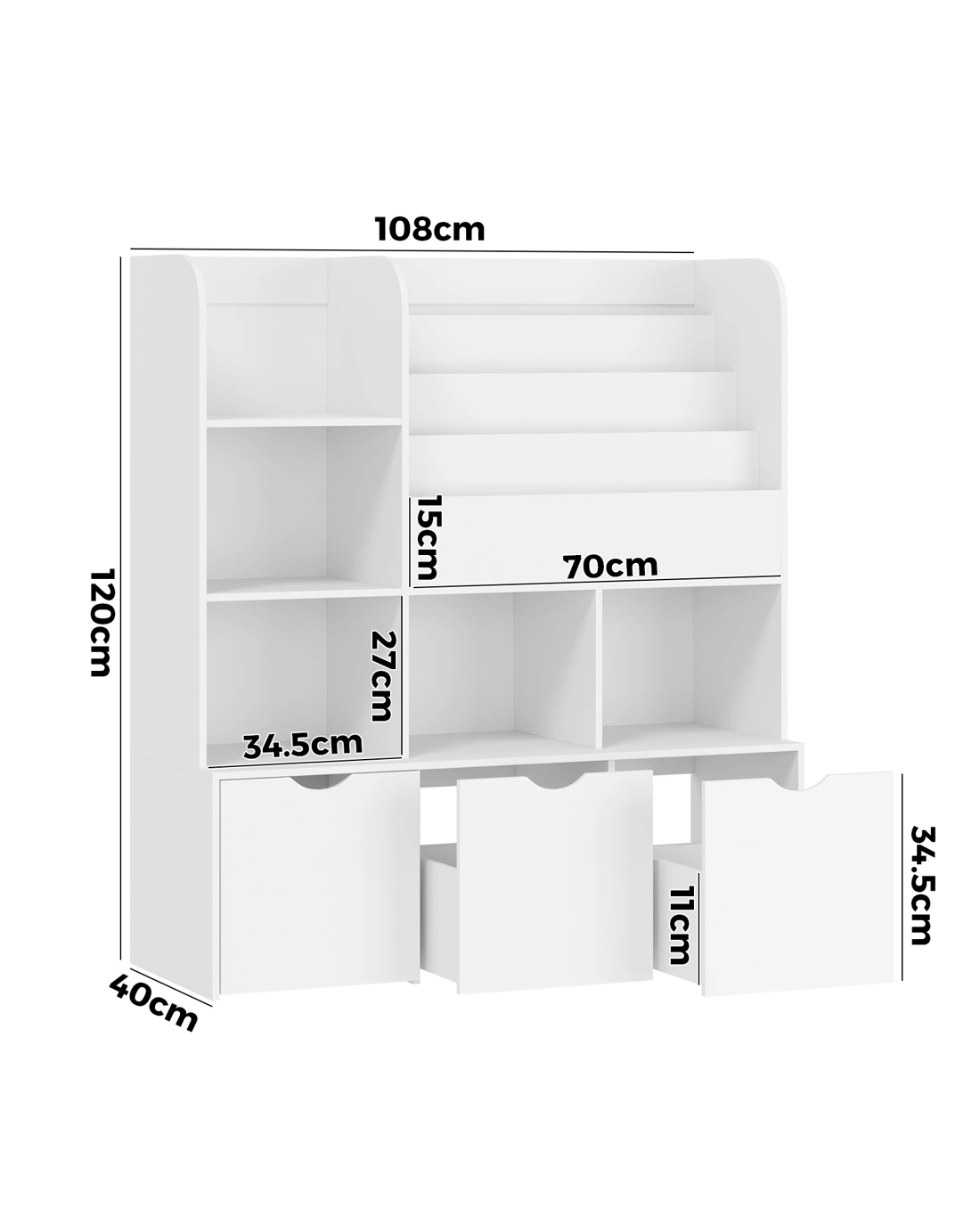 Sold by Kamprad's Oikos 1943Oikiture Kids Bookcase Toy Organiser Cabinet Bookshelf With Chest Storage - White