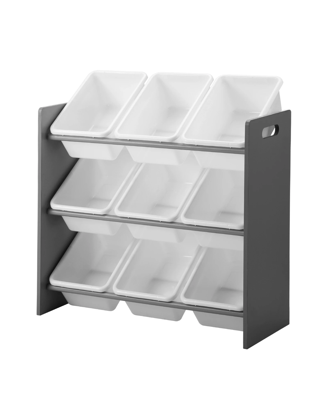 Comprising an array of 9 storage bins with same sizing, the 3-tier storage organiser lets you store an assortment of items, ranging from toys to books to games. The storage bins can be easily labelled and assigned for convenient keeping and retrieval. And if desired, the bins can be removed and brought to any location and returned to their original placement later. Plus, the fact that the entire ensemble is built to kid-friendly specifications with smooth edges and the use of non-toxic and eco-friendly materials make this storage organiser even more reassuring and safer for use.