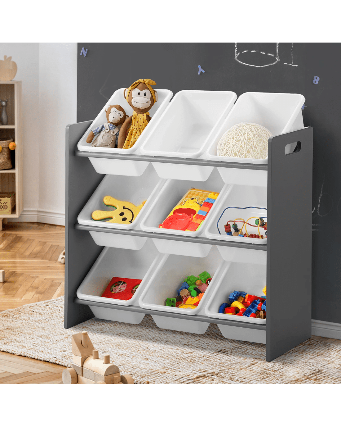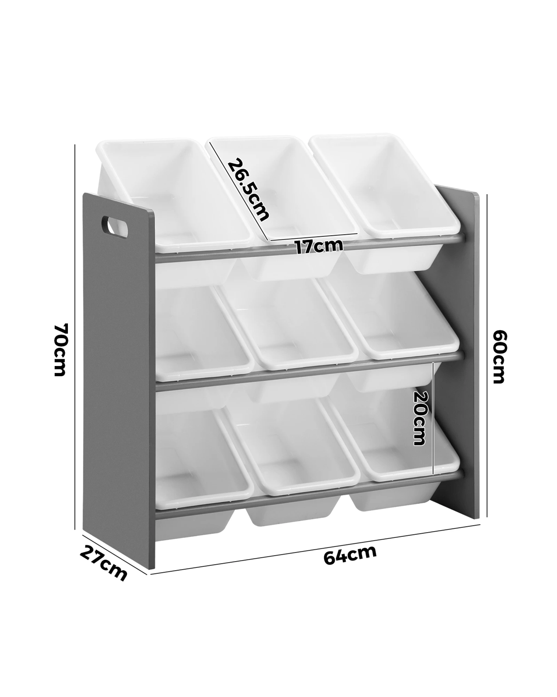 Sold by Kamprad's Oikos 1943Oikiture Kids Toy Box Organiser 9 Bins Display Shelf Storage Rack Drawer - Grey