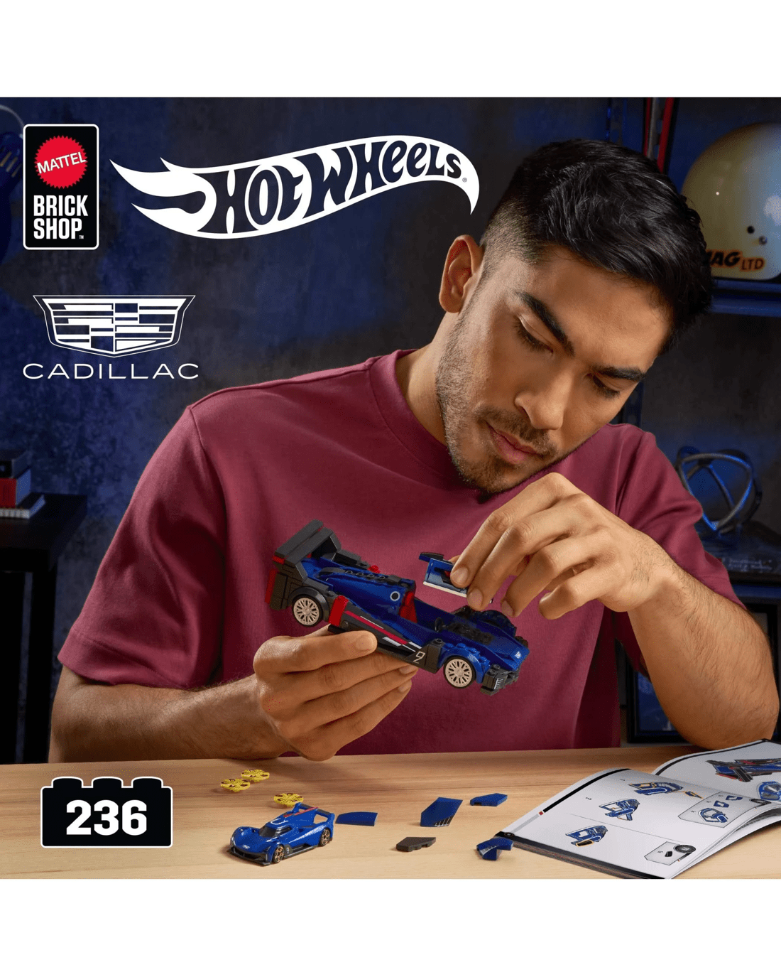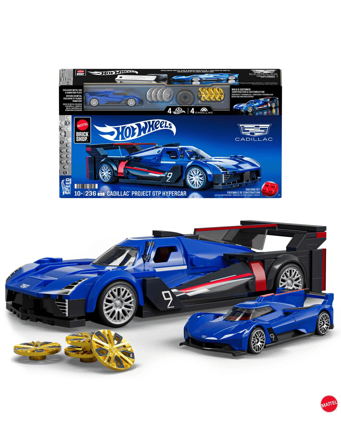 Experience hands-on excitement as you build the 1:32 scale Cadillac Project GTP Hypercar from Mattel Brick Shop. Designed with incredible attention to detail, this set lets you create your own custom racing machine using unique decals and interchangeable wheel covers. You'll also discover a special metal signature plate and an exclusive matching mini metal car to enhance your collection. Perfect for enthusiasts and builders alike, this kit brings the thrill of the racetrack right into your home. Start building and let your imagination race to the finish line.Features