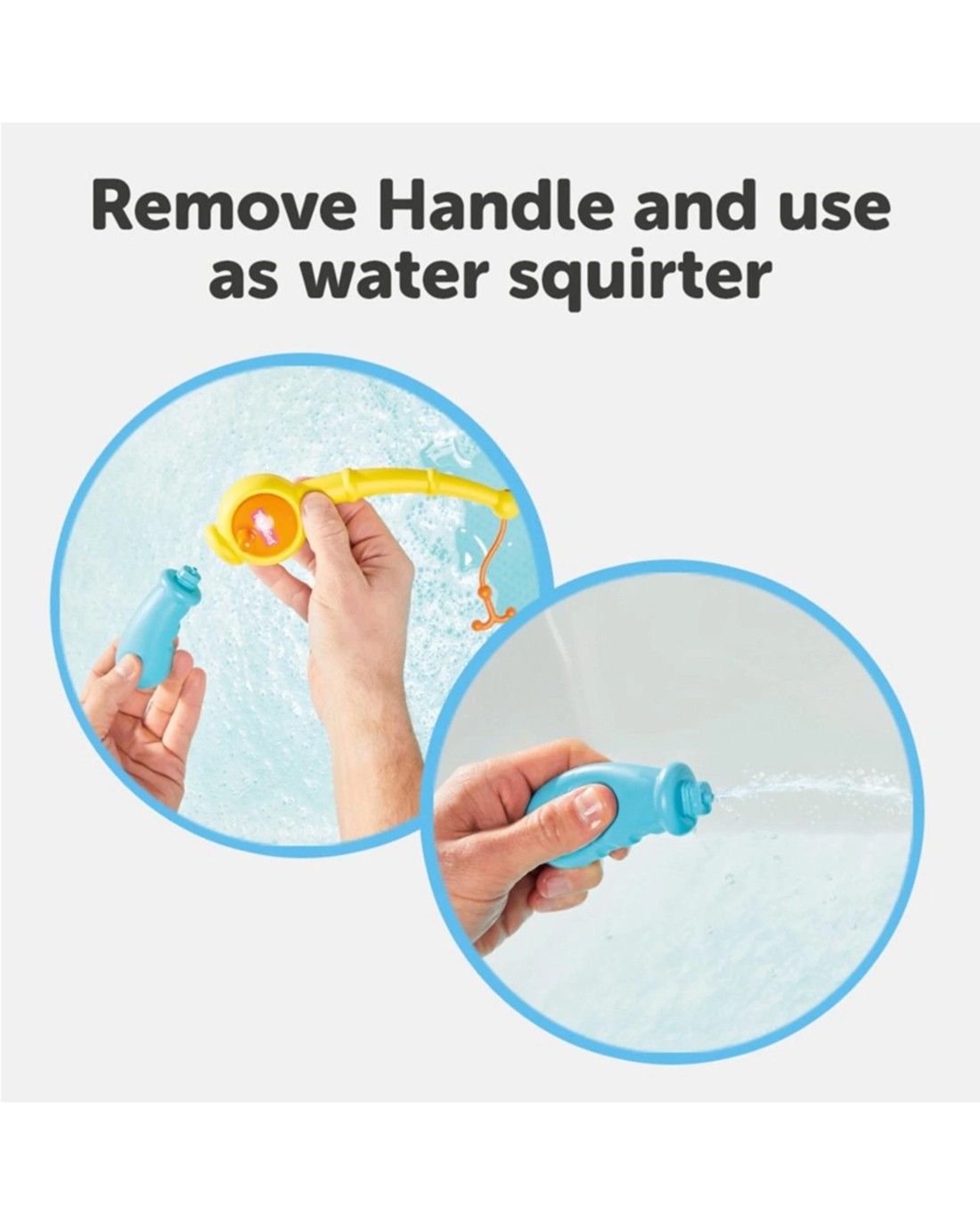 - Water play: Hand Grip separates from rod to act as a squirter to set those Octopals spinning!