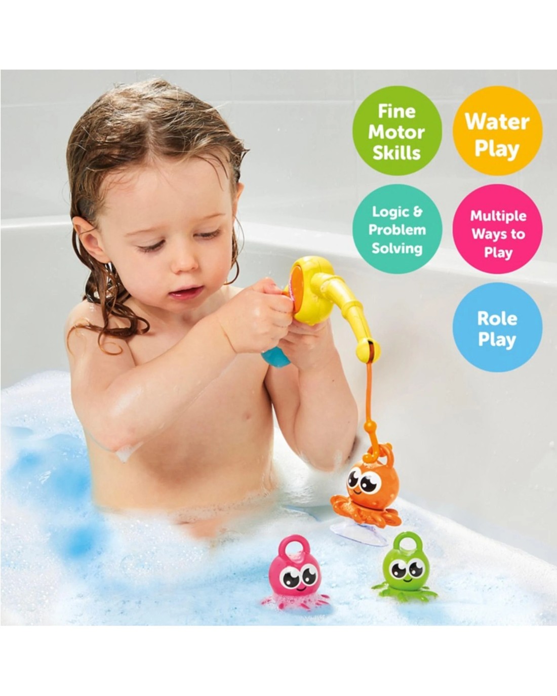 - Catch of the day: Set includes three floating Octopal characters that kids can hook safely on the end of their line.