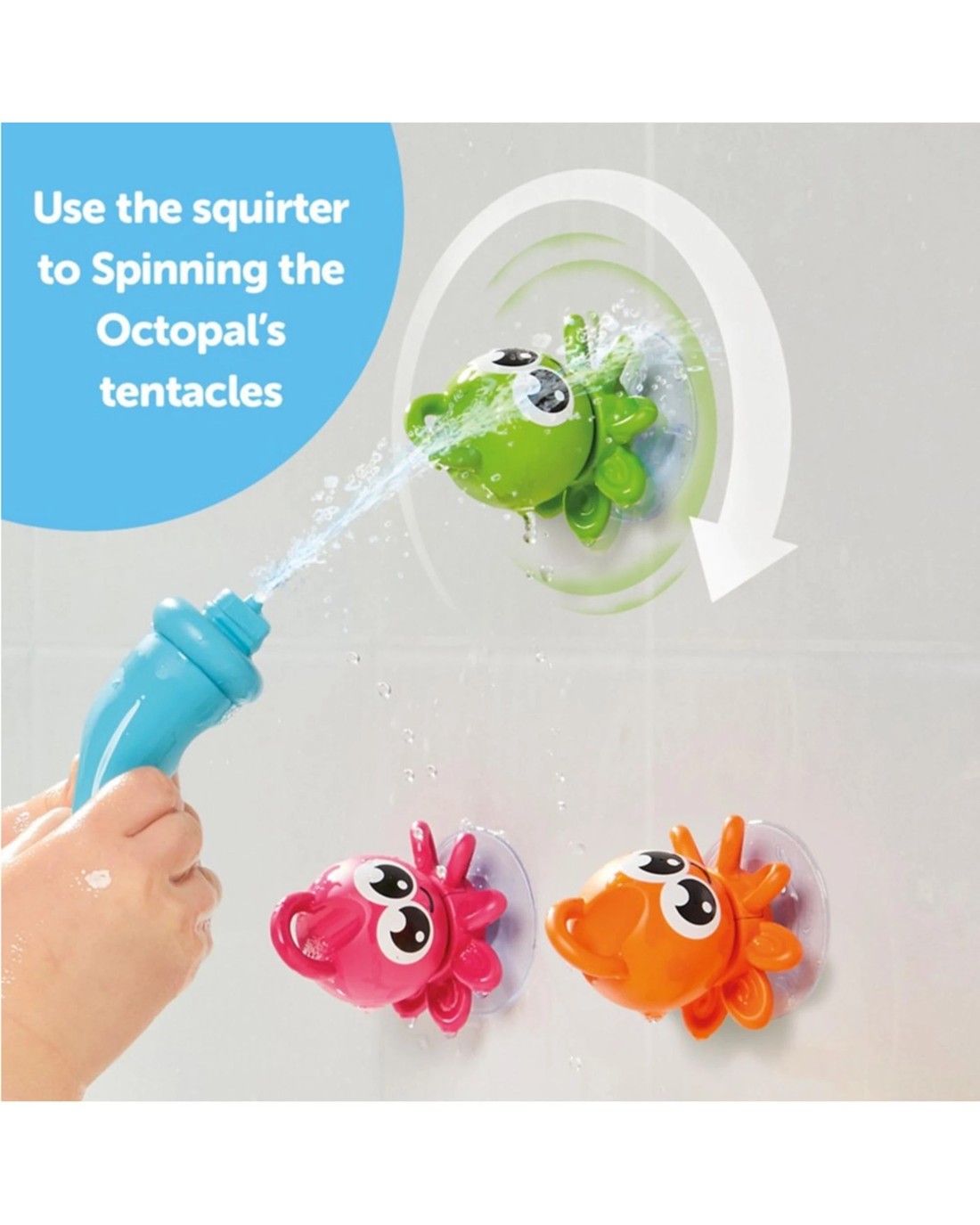 - In a spin: Octopals have suction pads that stick to bath sides and wall tiles. Place them side by side so their tentacles interlock like cogs.