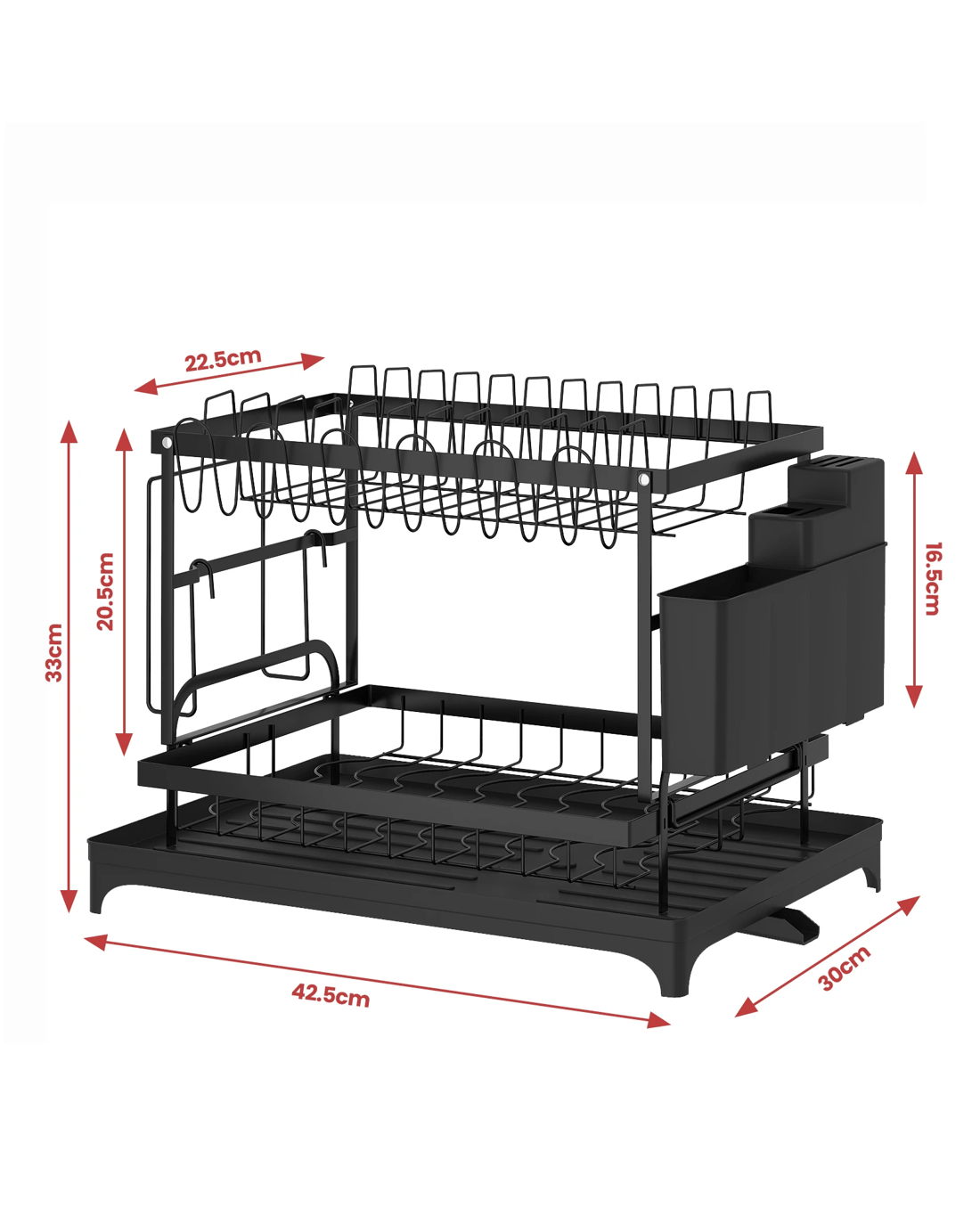 Sold by AdvwinAdvwin 2 Tier Dish Drying Rack Plate Drainer Cutlery Holder Kitchen Organizer - Black
