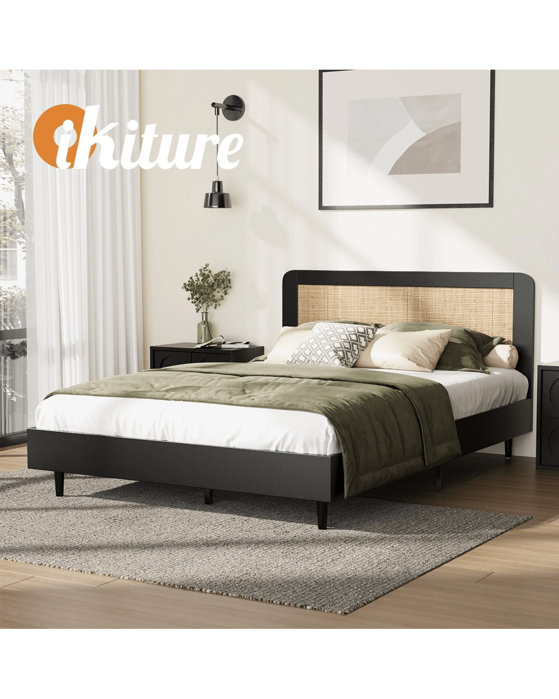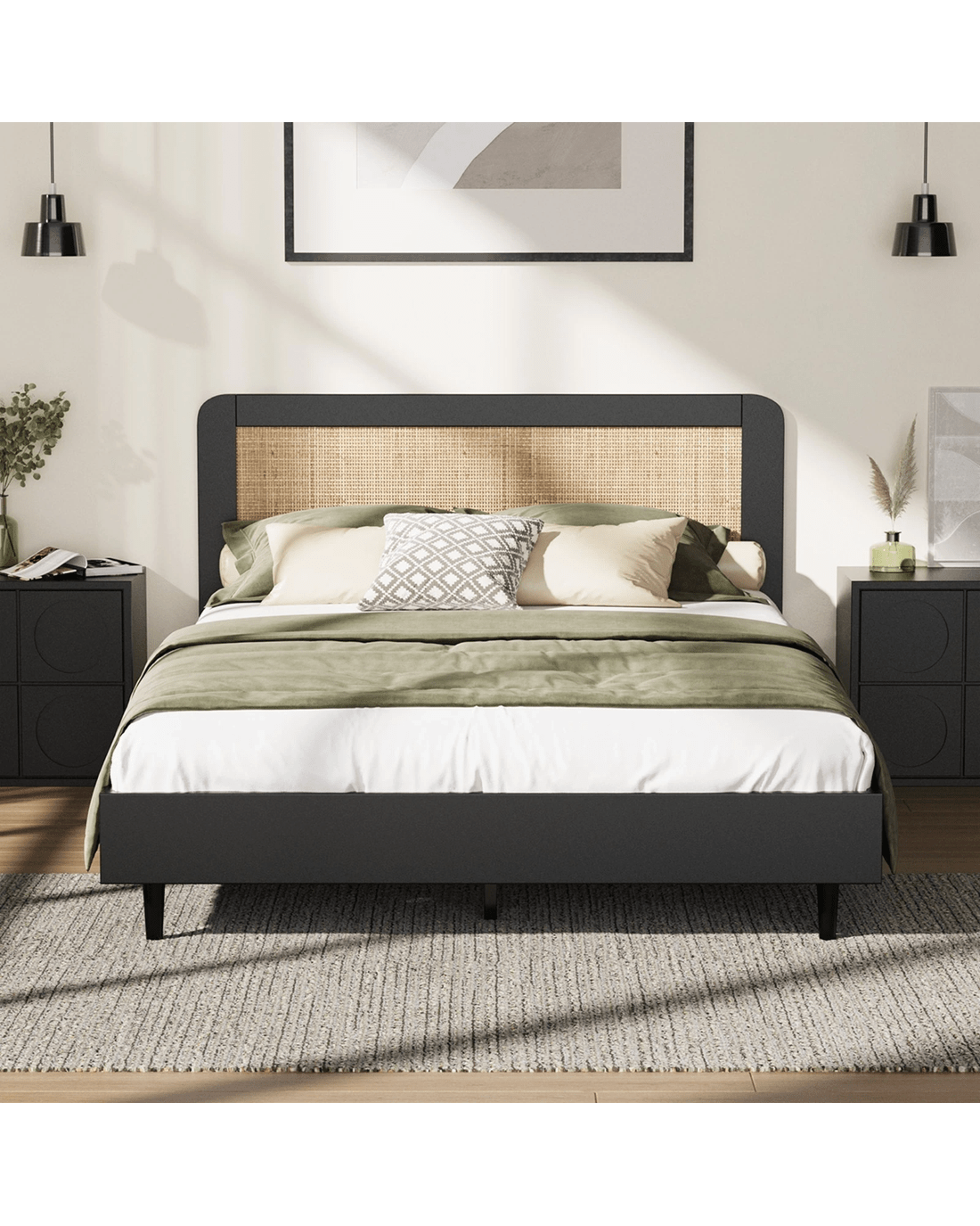Elevate your bedroom to a realm of elegance and comfort with our Oikiture stunning new bed frame featuring rattan headboard. Immerse yourself in the natural beauty and intricate craftsmanship that this piece brings to your sleeping space, turning your dreams into reality every night.