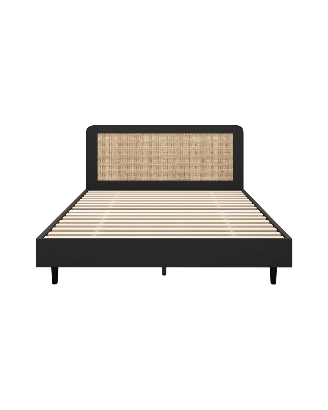 Sold by Kamprad's Oikos 1943Oikiture Queen Bed Wooden Bed Frame With Rattan Headboard - Black