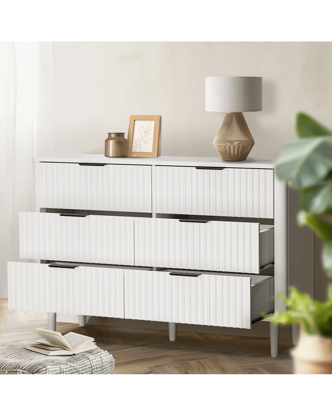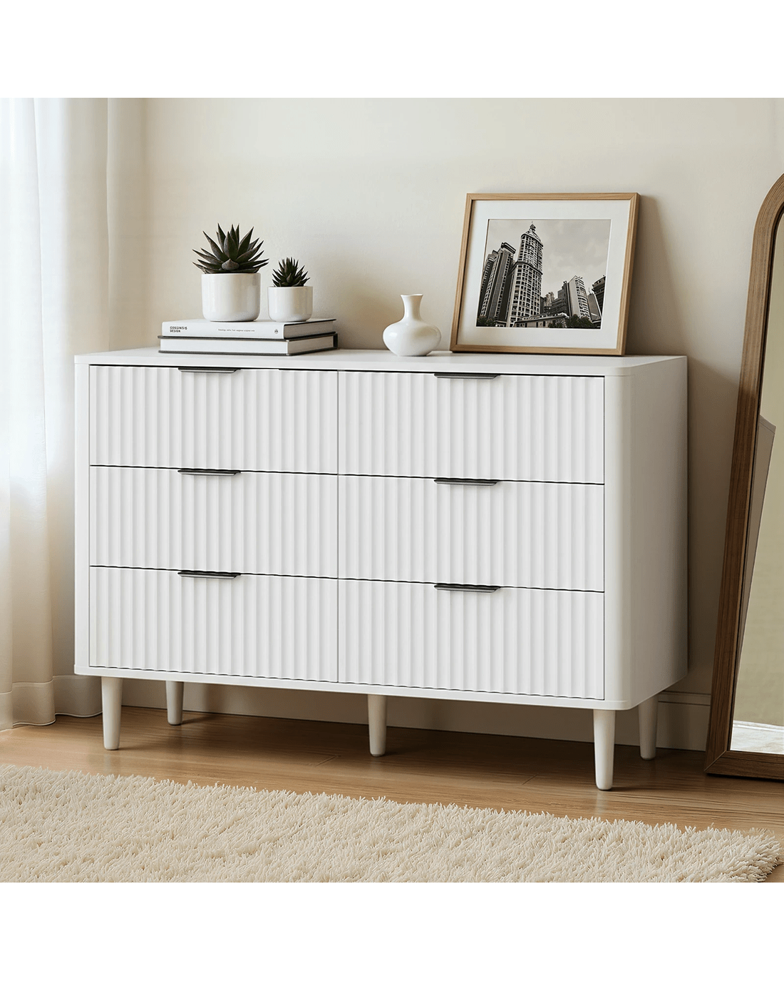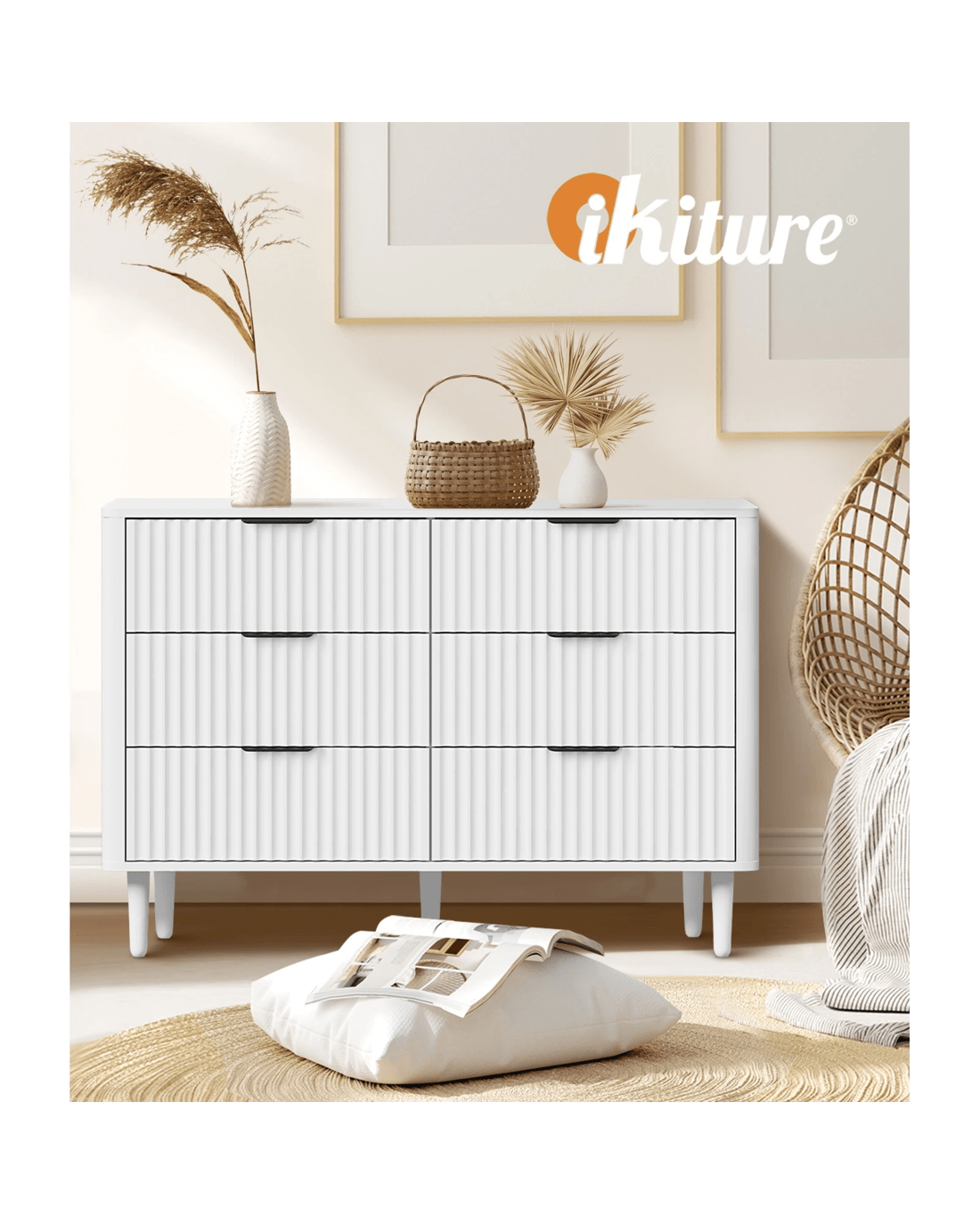 Sold by Kamprad's Oikos 1943Oikiture 6 Chest Of Drawers Storage Cabinet Dressers Lowboy Stripe - White