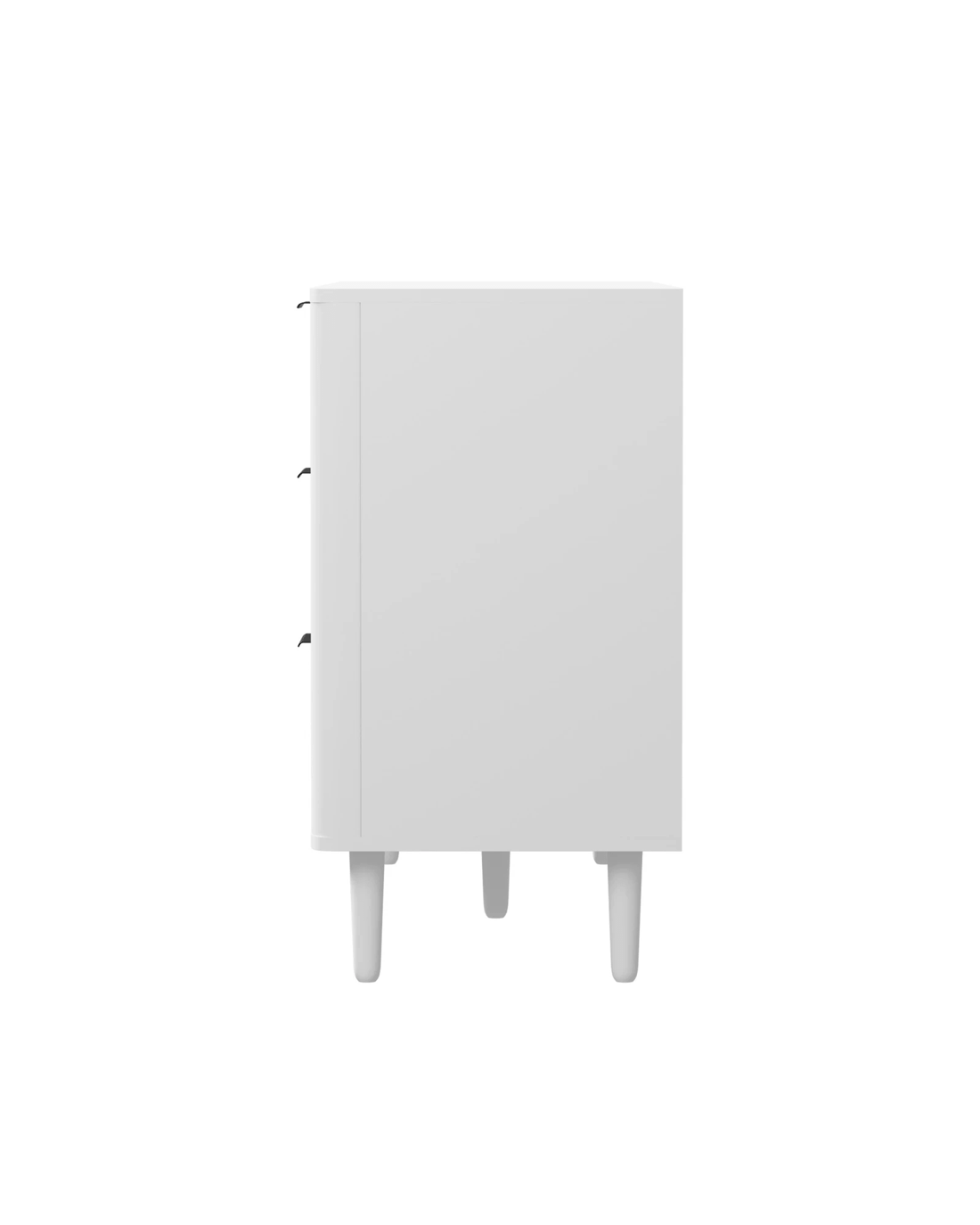 Constructed with a mix of particle board cum MDF and melamine materials, the chest of drawers maintains a good sense of structure and durability. Better still, the sturdy legs are strong to the task and set at a practical height for easy cleaning underneath the chest of drawers.