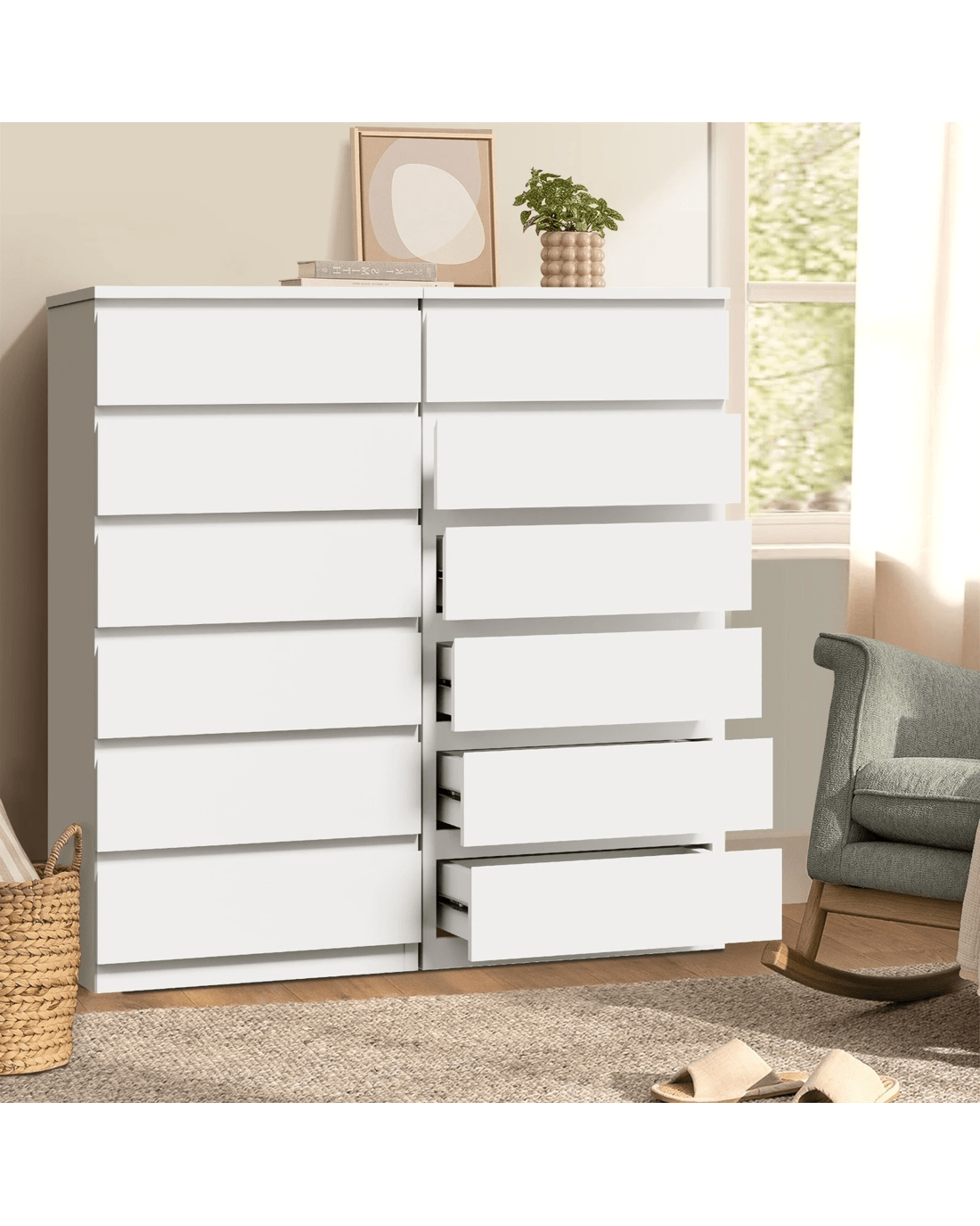 Whether placed in a bedroom, living room, or hallway, the versatile design ensures that our handle-free chest of drawers seamlessly blends into any space. Embrace the essence of contemporary living with this statement piece - where simplicity meets functionality, offering a sleek and chic white storage solution for the discerning homeowner of today.