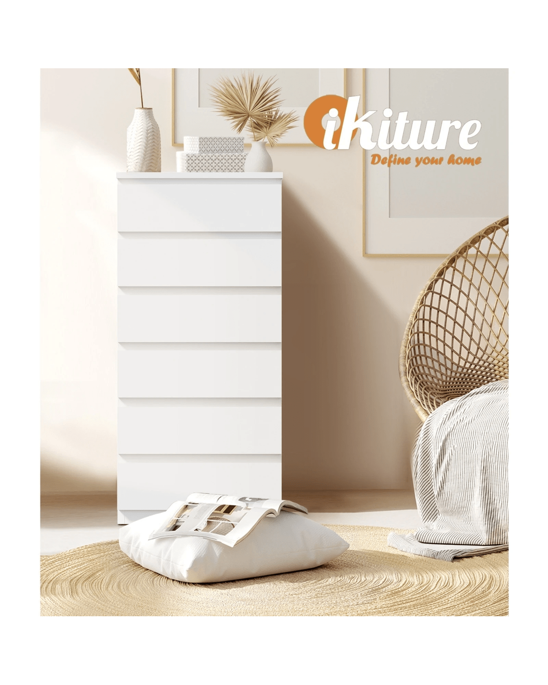 Sold by Kamprad's Oikos 1943Oikiture 6 Chest of Drawers Tallboy Dresser Table Storage Cabinet - White