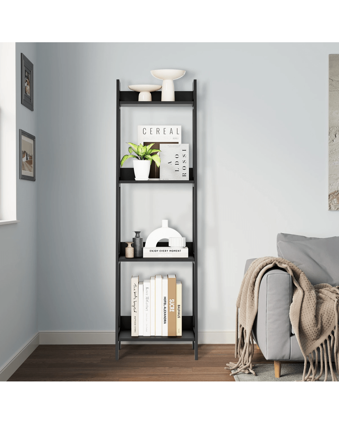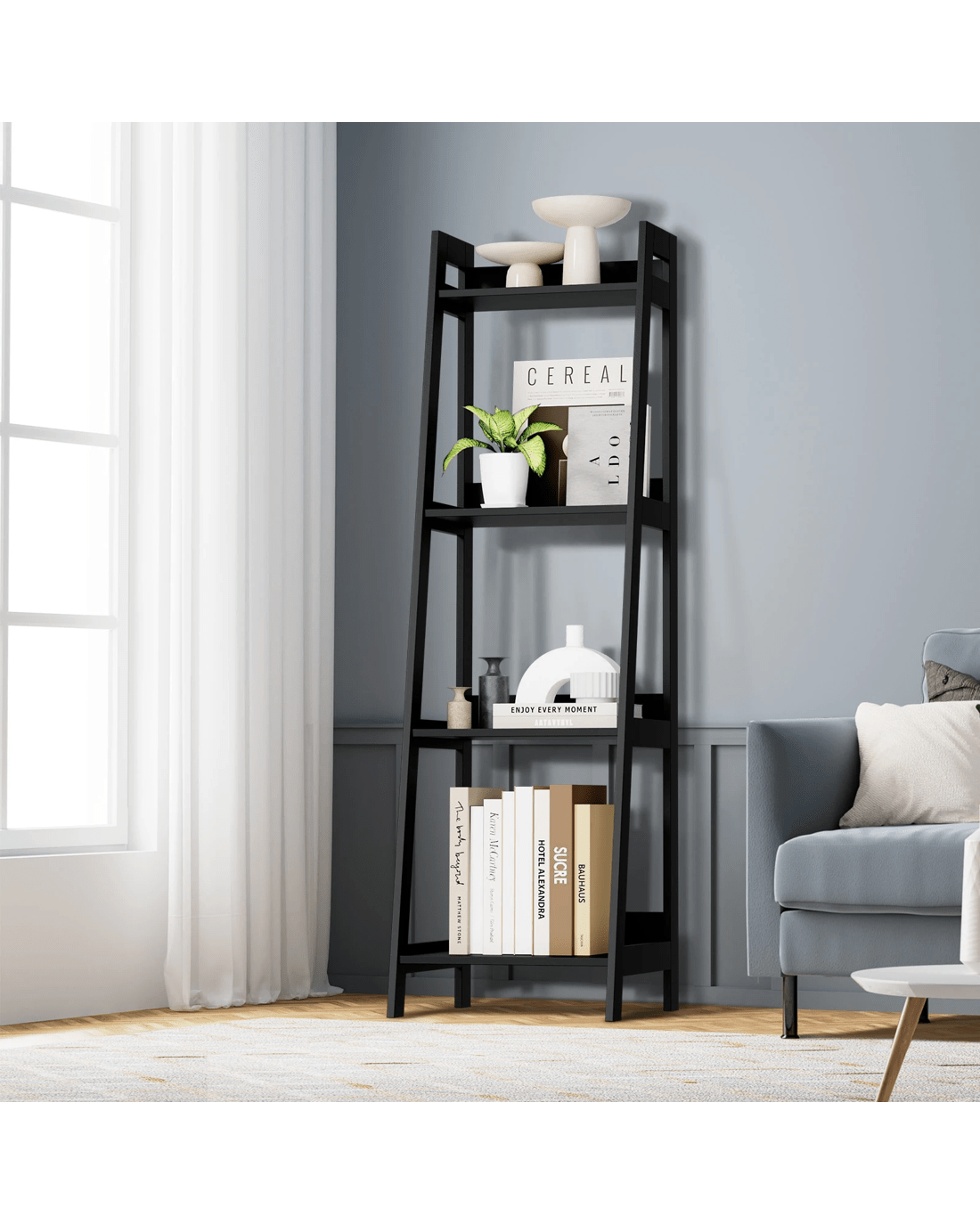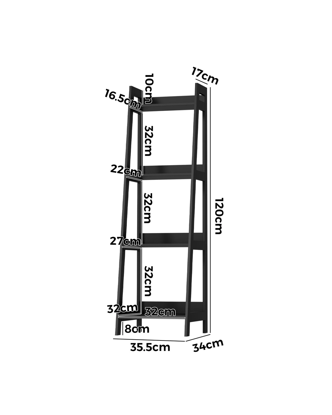 Sold by Kamprad's Oikos 1943Oikiture Bookshelf 4 Tier Corner Ladder Shelf Home Storage Display Rack - Black