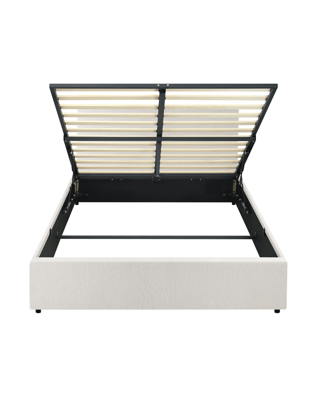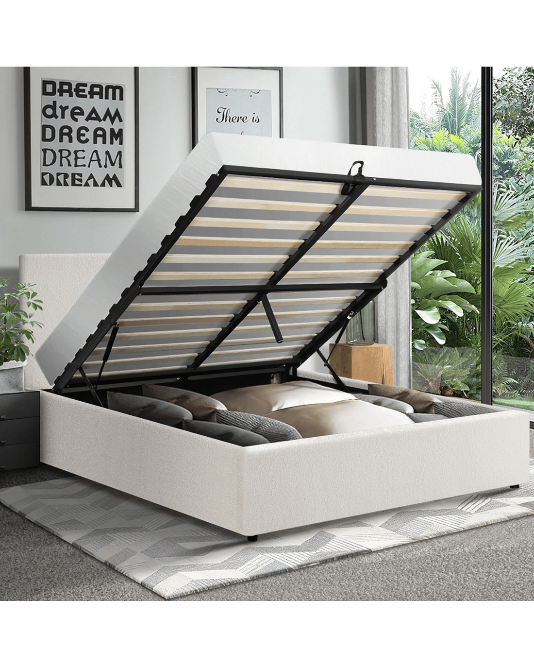 Sold by Kamprad's Oikos 1943Oikiture Queen Bed Frame Gas Lift Base With Storage Boucle - White