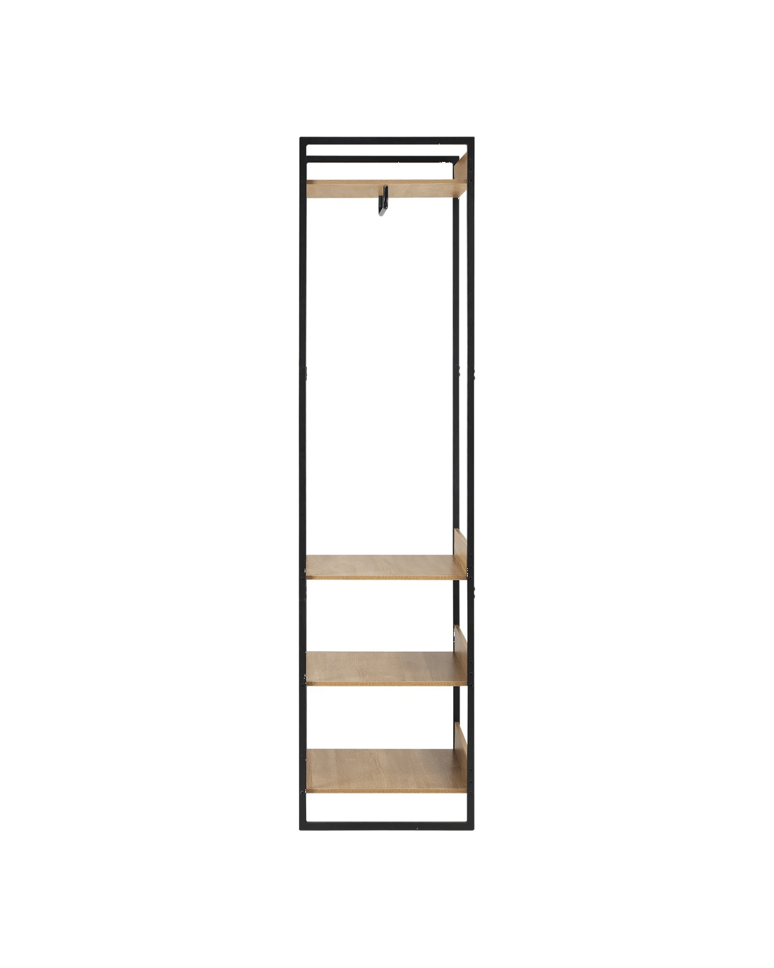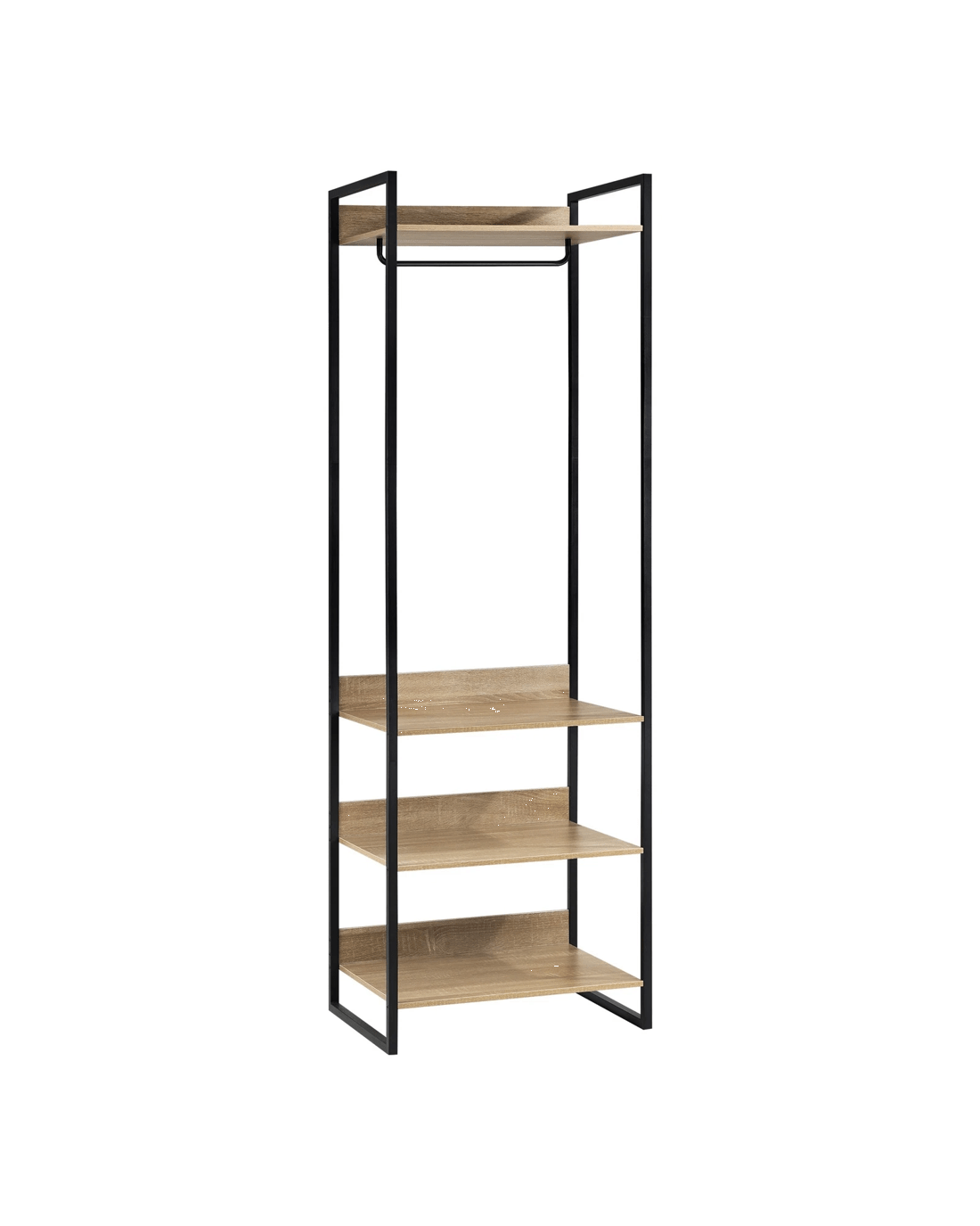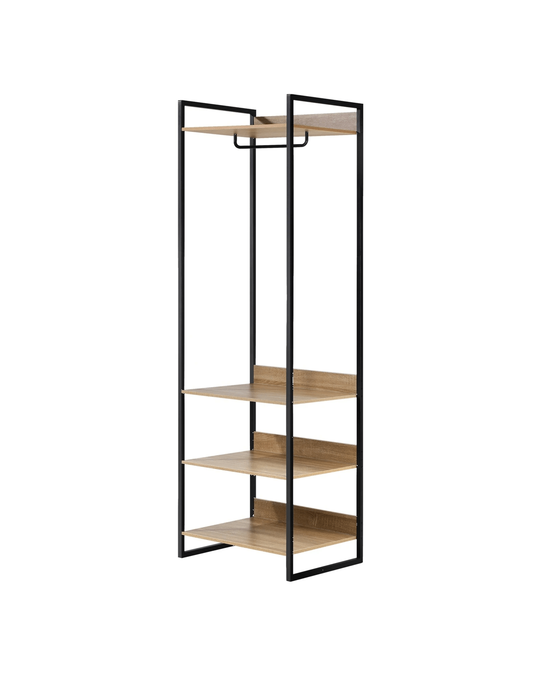 Built with durability in mind, our open wardrobe boasts a robust construction that ensures stability and longevity. The industrial-inspired design, complete with metal accents, adds character to your room while maintaining a practical and organized living space.