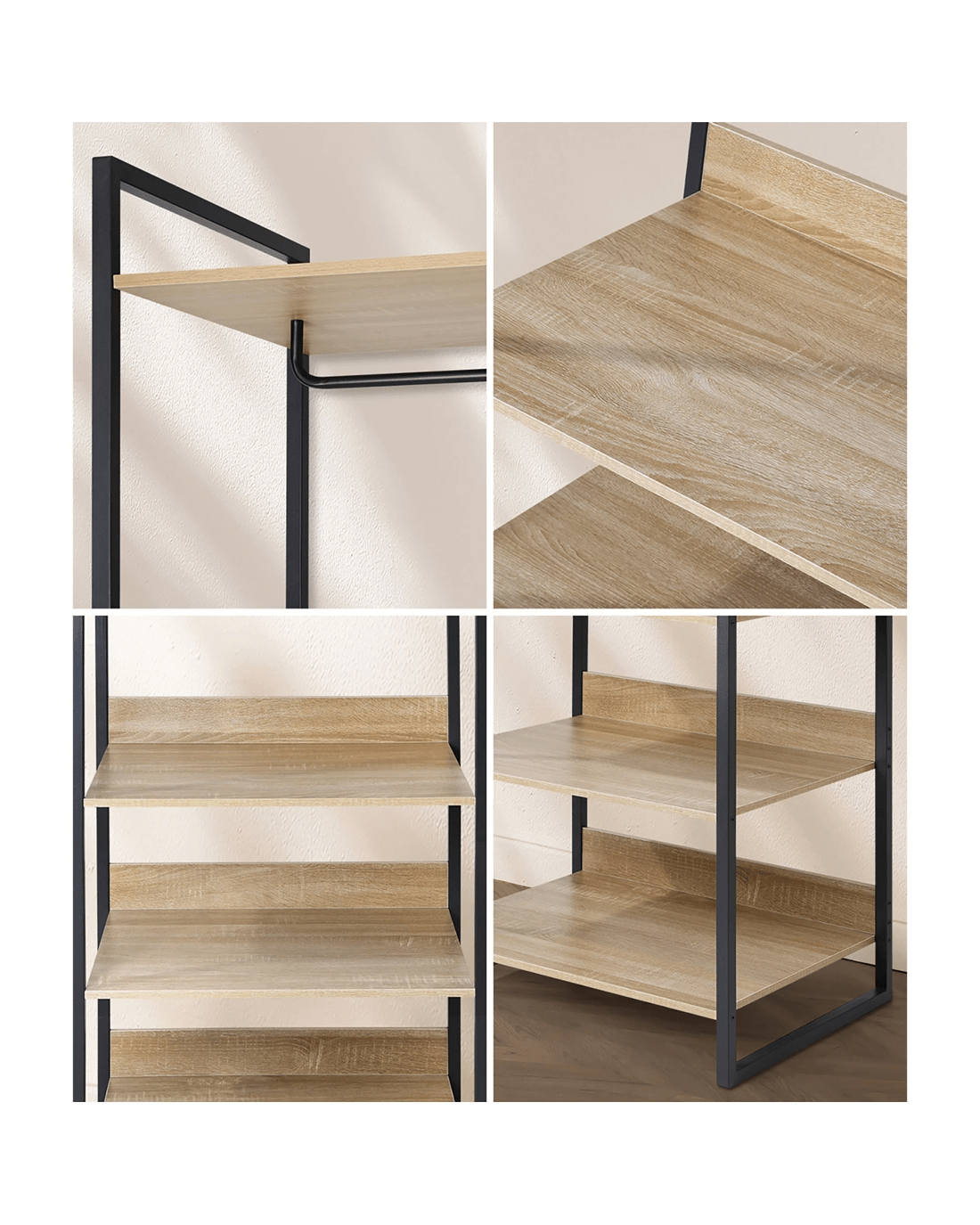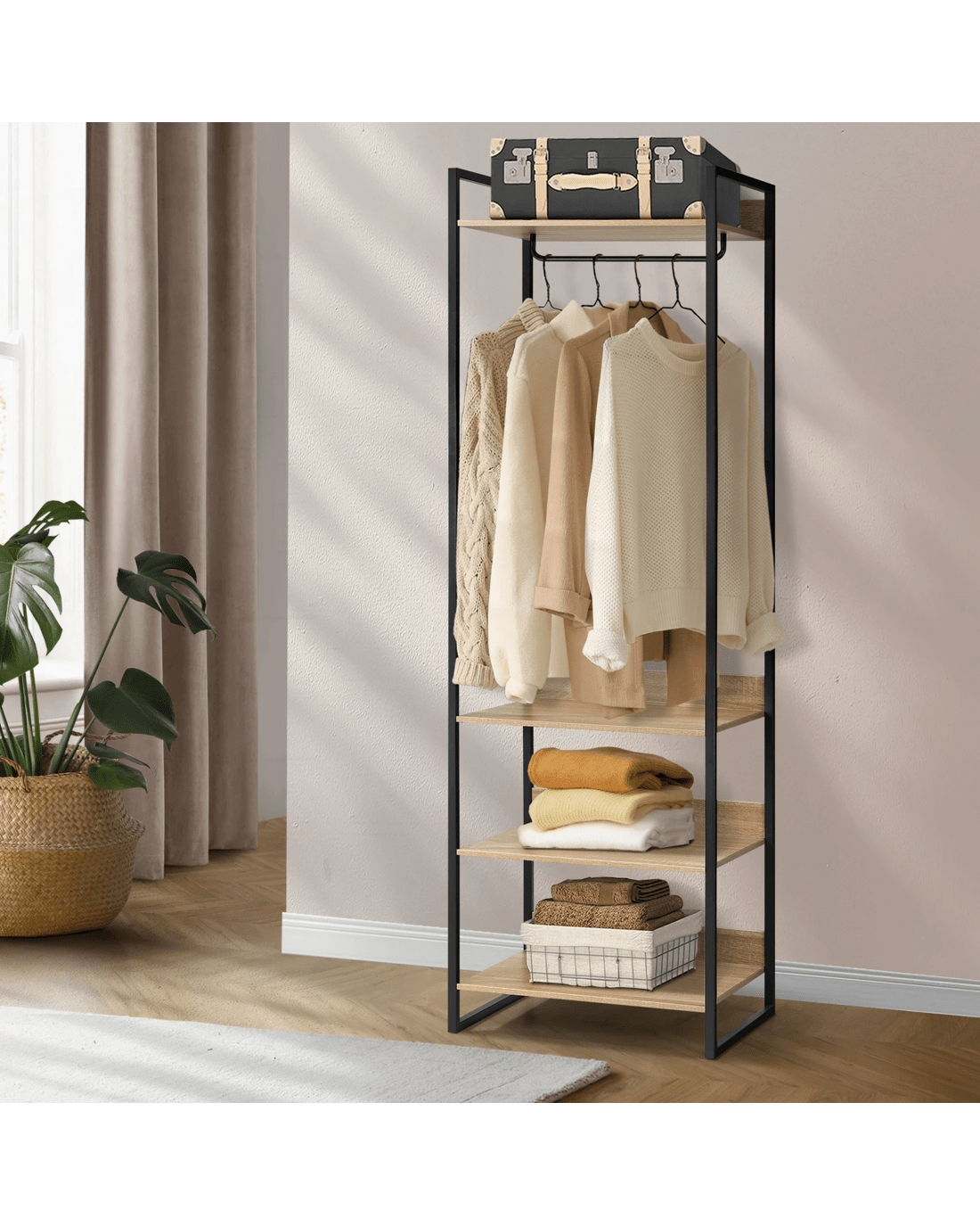 Sold by Kamprad's Oikos 1943Oikiture Clothes Rack Open Wardrobe Garment Coat 4 Shelves Hanging Rail Metal - Natural